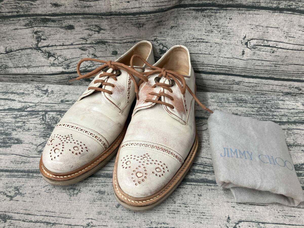 JIMMY CHOO ジミーチュウ ホワイト ウィングチップ 25.5cm