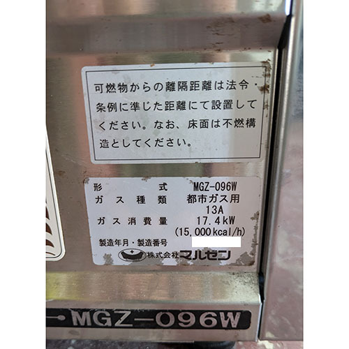 【業界最長1年保証】餃子焼機 マルゼン MGZ-096W 都市ガス 業務用 中古/送料別途見積