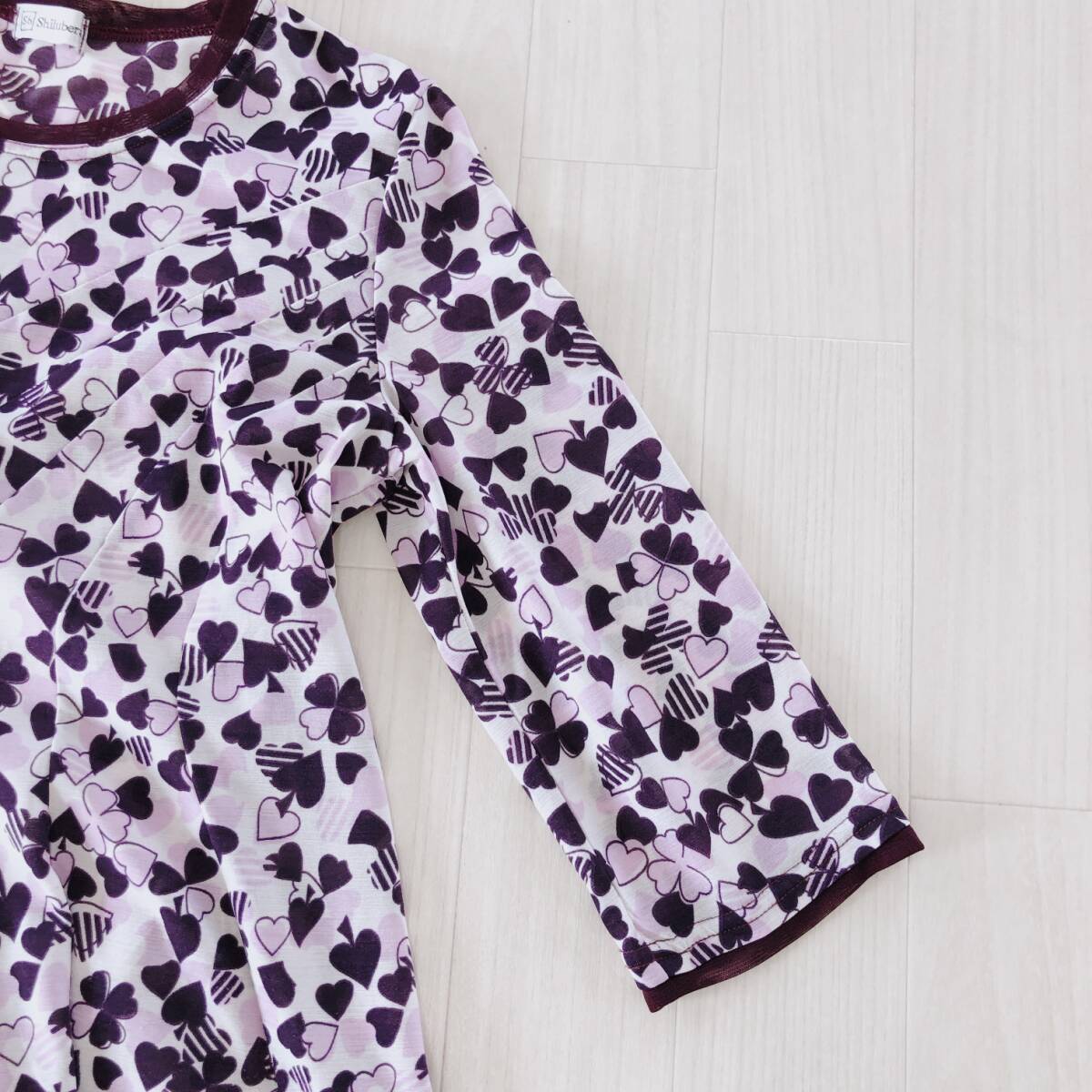 YX1401 美品 shilubera レディース トップス ブラウス 七分袖 薄手 伸縮性 丸首 ピンク 桃 シンプル かわいい フェミニン おしゃれ 春夏