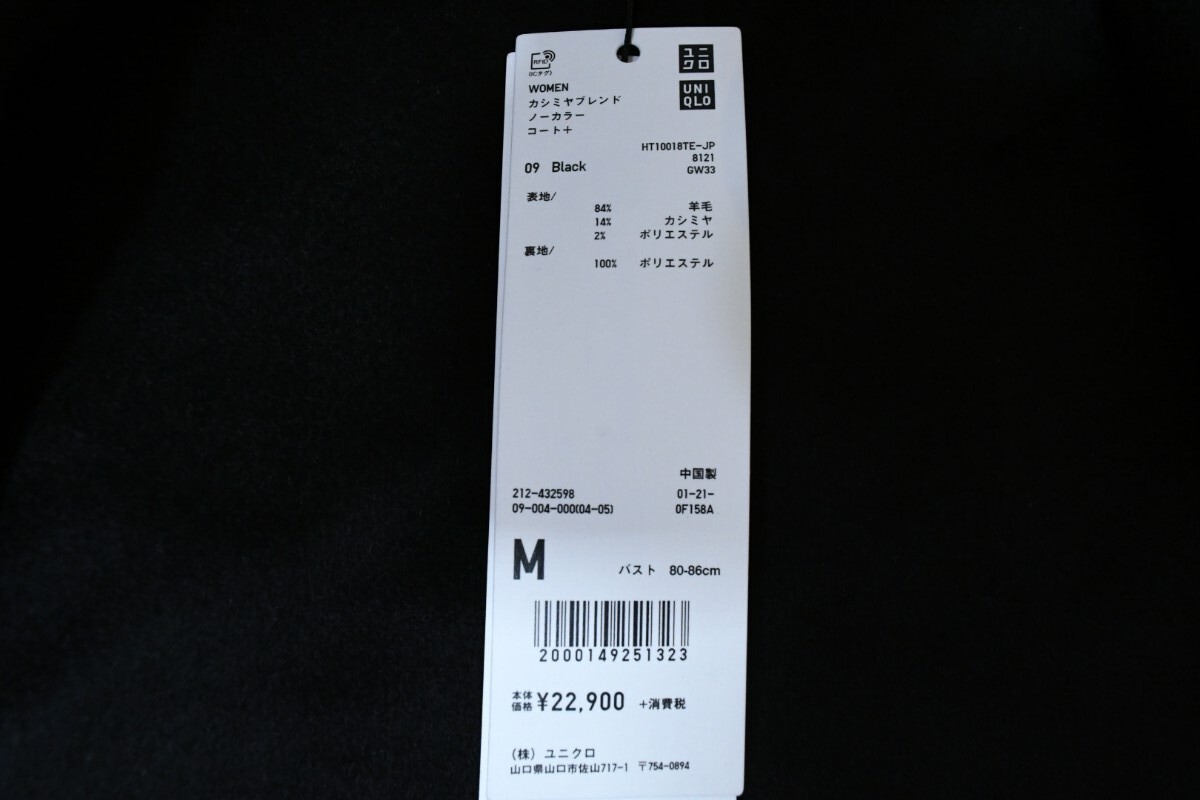 新品未使用 ユニクロ UNIQLO カシミヤブレンドノーカラーコート Mサイズ ブラック 黒 アウター レディース 冬服 タグ付き の出品です。