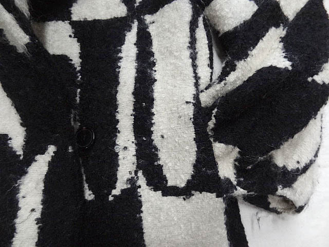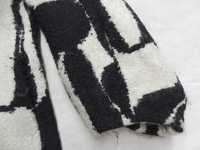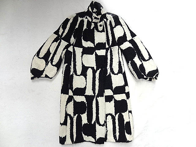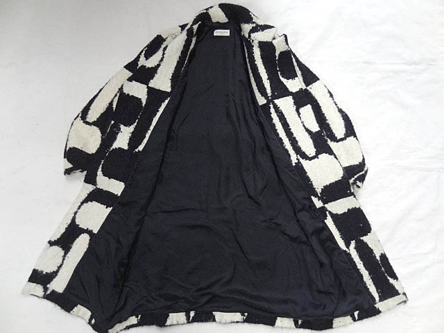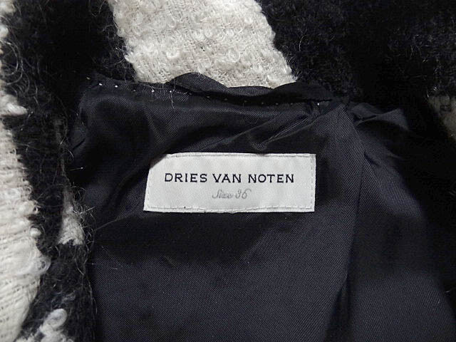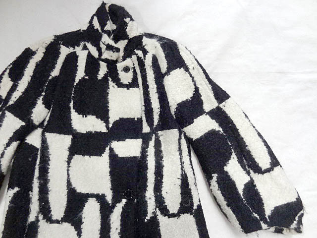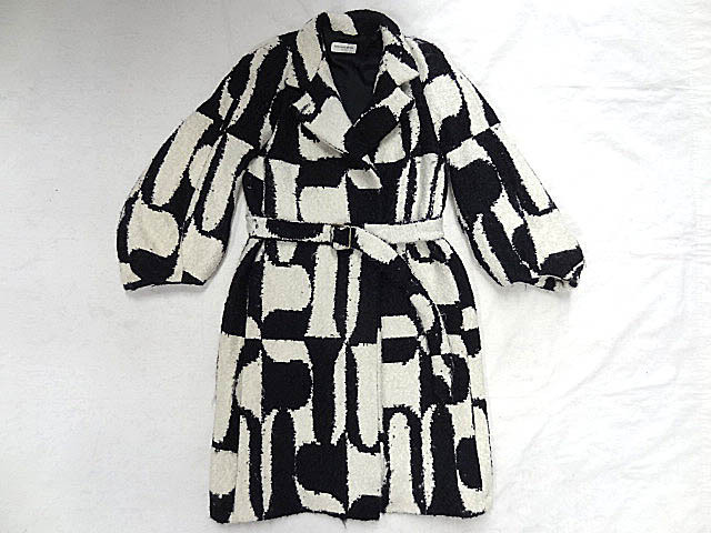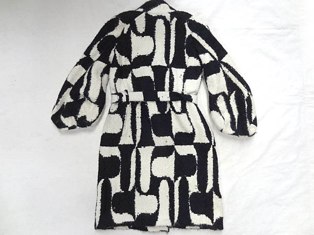 DRIES VAN NOTEN ドリスヴァンノッテン 黒 白 モノトーン 幾何学 ジオメトリック ベルト コート 変形 デザイン モヘア ウール コットン 色