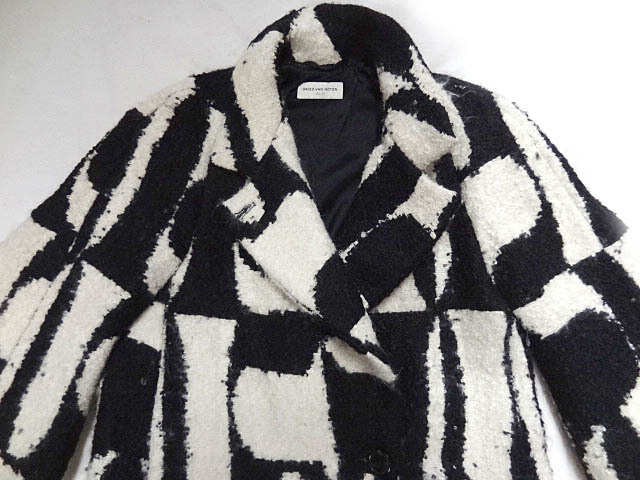 ドリスヴァンノッテン モノトーンジオメトリック総柄変形デザインコート