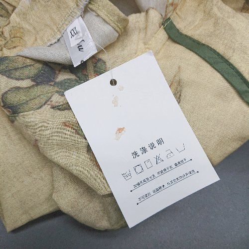 ◇ 新品 Mu ying fu shi ウエストリボン 華やか カジュアル ゆったりめ 半袖 Tシャツ サイズXXL グリーン レディース E