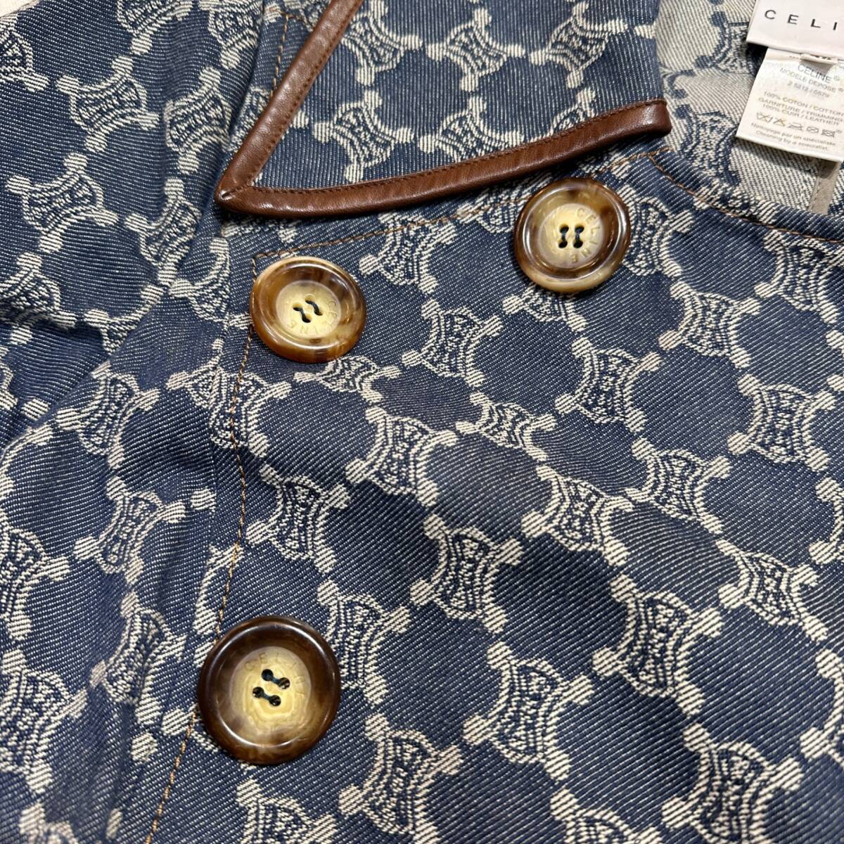 | CELINE セリーヌ 【lay0125V】 トリオンフ DENIM P-COAT パイピングレザー デニムピーコート 40 フランス製 レディース ブルー CH | |