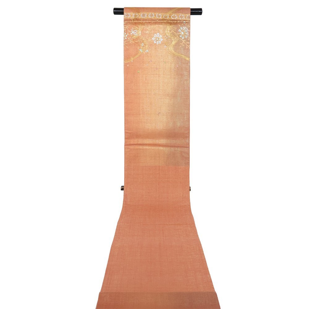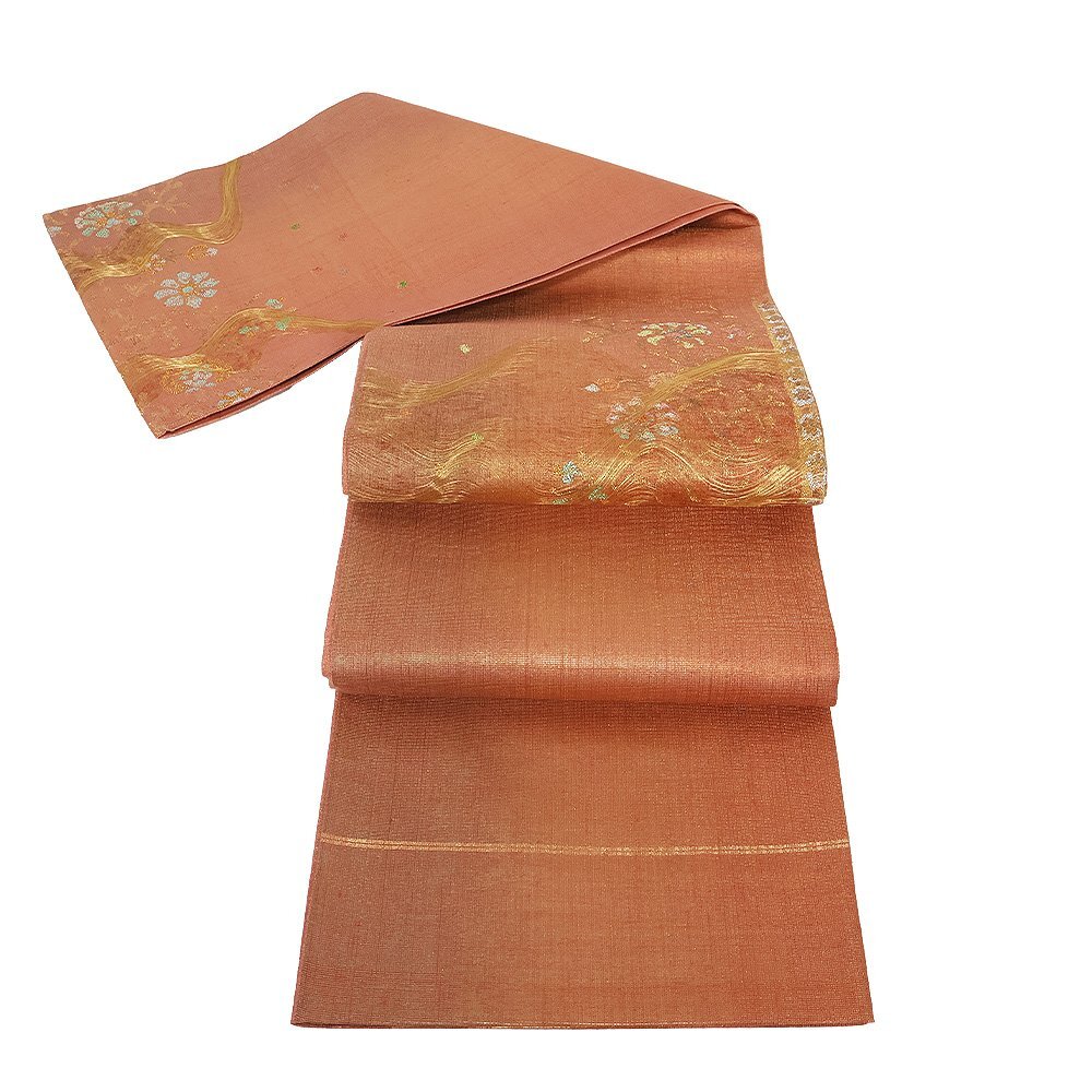 | しょうざん紬 袋帯 レンガ色・金暈し・金糸通し地 華文・唐花・波 未使用品 仕立て上がり |