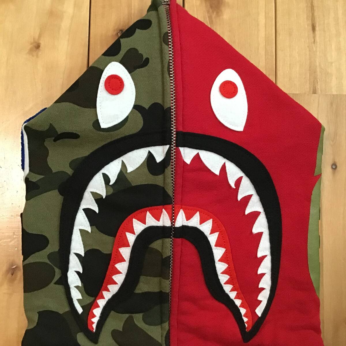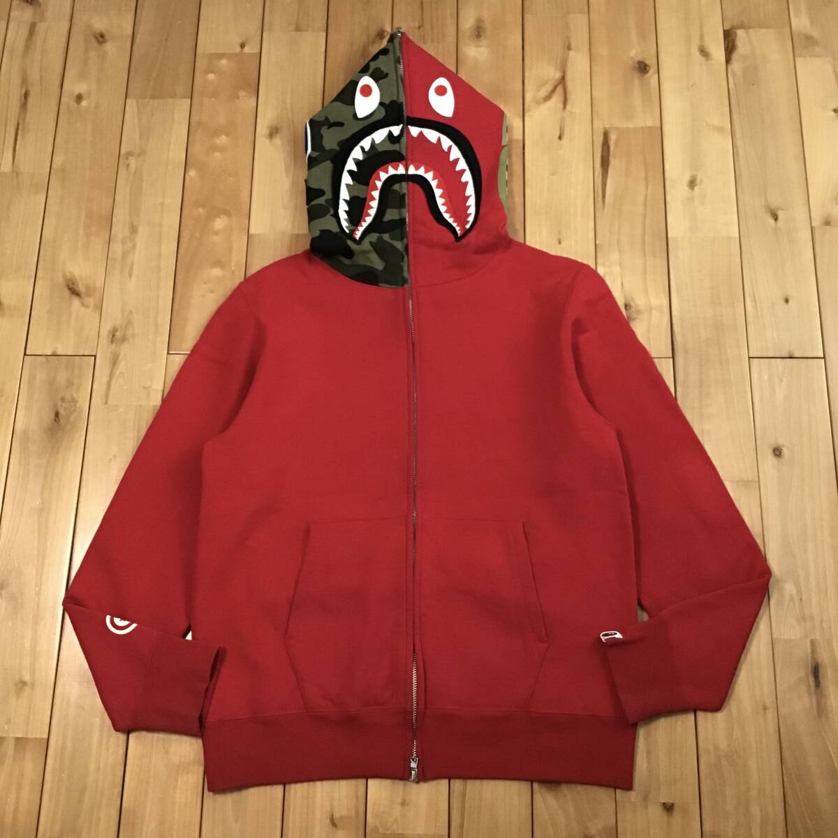 Red × 1st camo green シャーク パーカー Mサイズ shark full zip hoodie a bathing ape BAPE エイプ ベイプ アベイシングエイプ 迷彩 ki6
