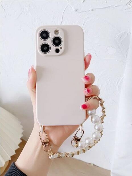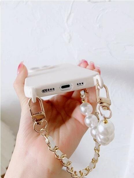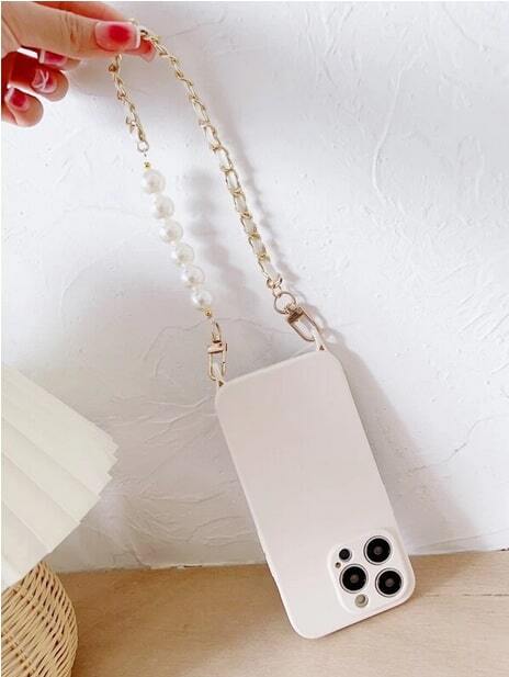 新品未使用★スマホソフトケース★フェイクパールストラップ付き ホワイト 真珠★iPhoneSE2 SE3 第2世代 第3世代 iPhone7 iPhone8★白