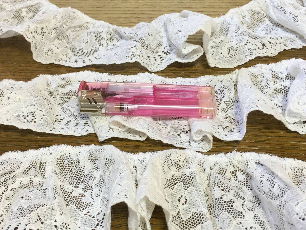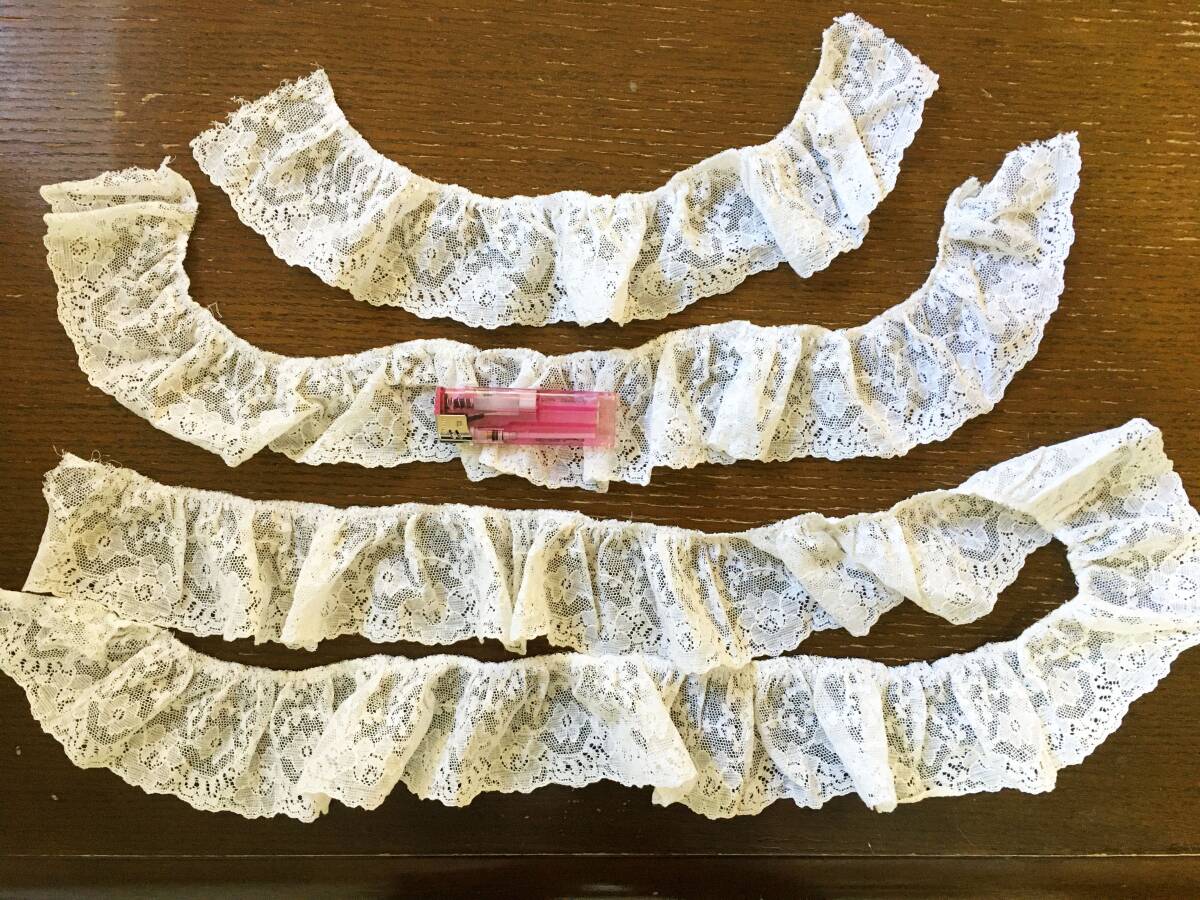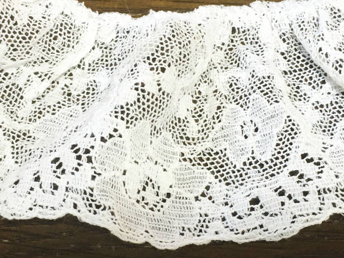 a. 3本まとめて フランス アンティークレース 長い ギャザー 刺繍 ドール衣装や小物制作にも ビスクドール