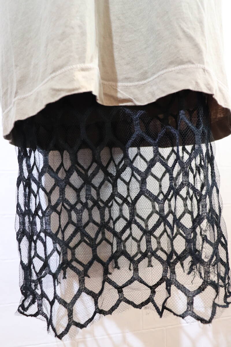 即決 DRIES VAN NOTEN ドリスヴァンノッテン 2WAY メッシュ&レース装飾 オーバーサイズTシャツ レイアードTシャツ ワンピース レディースS