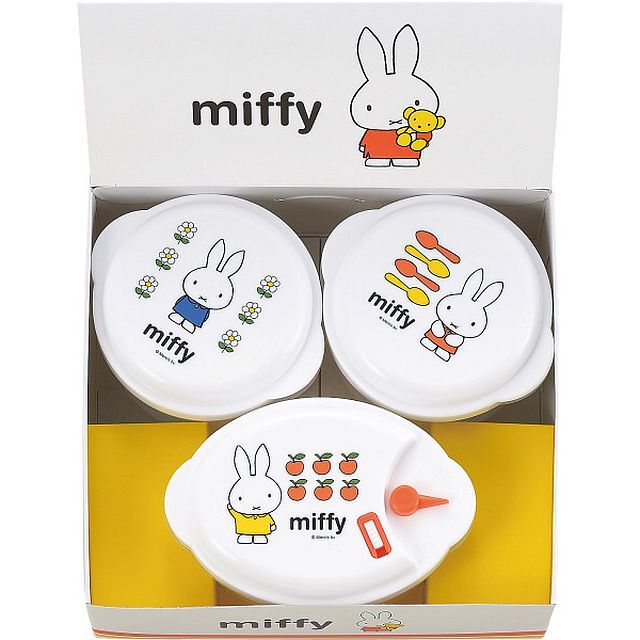 ミッフィーと可愛い小物が散りばめられた電子レンジ容器です。