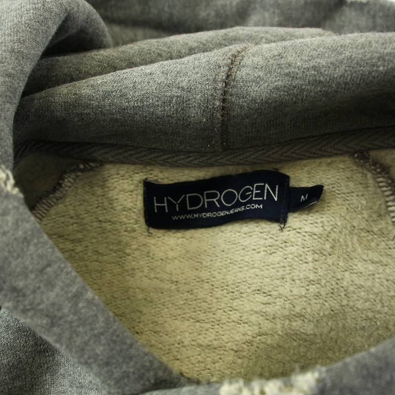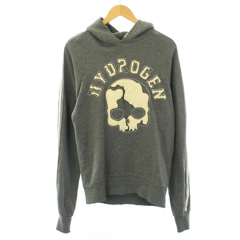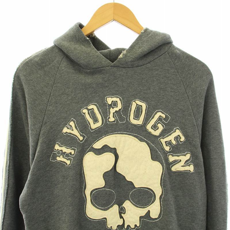 ハイドロゲン HYDROGEN パーカー プルオーバー 長袖 スカル柄 ダメージ加工 裏起毛 コットン M グレー /KU メンズ