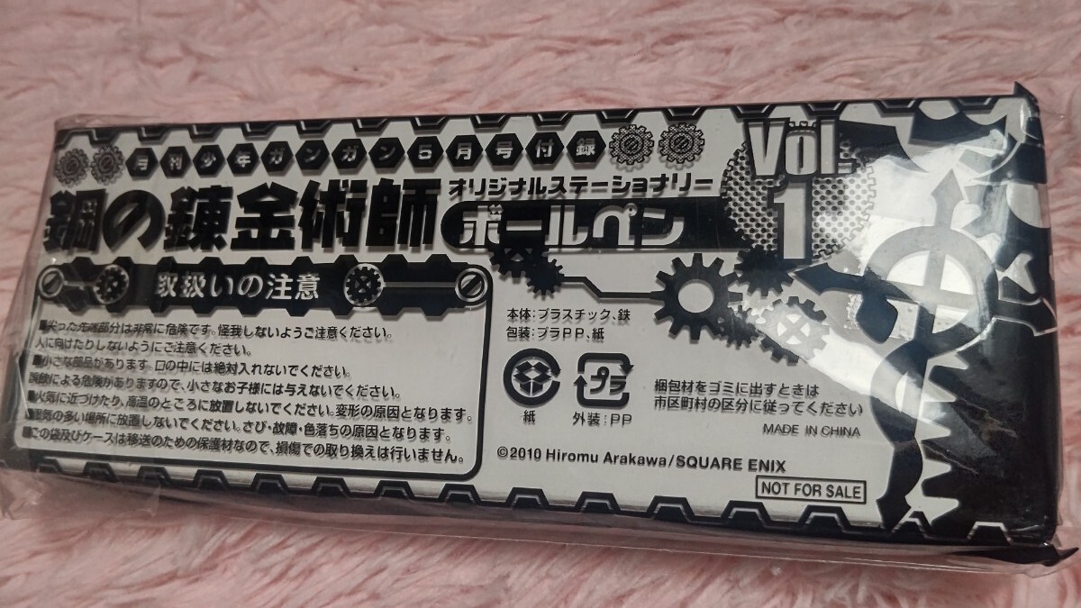 16年程前に購入した月刊少年ガンガン5月号の付録の、鋼の錬金術師のオリジナルステーショナリー・ボールペンになります。