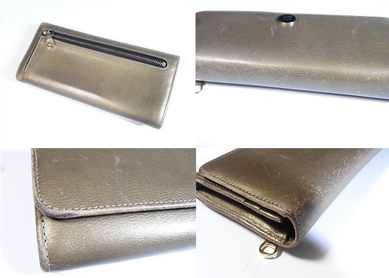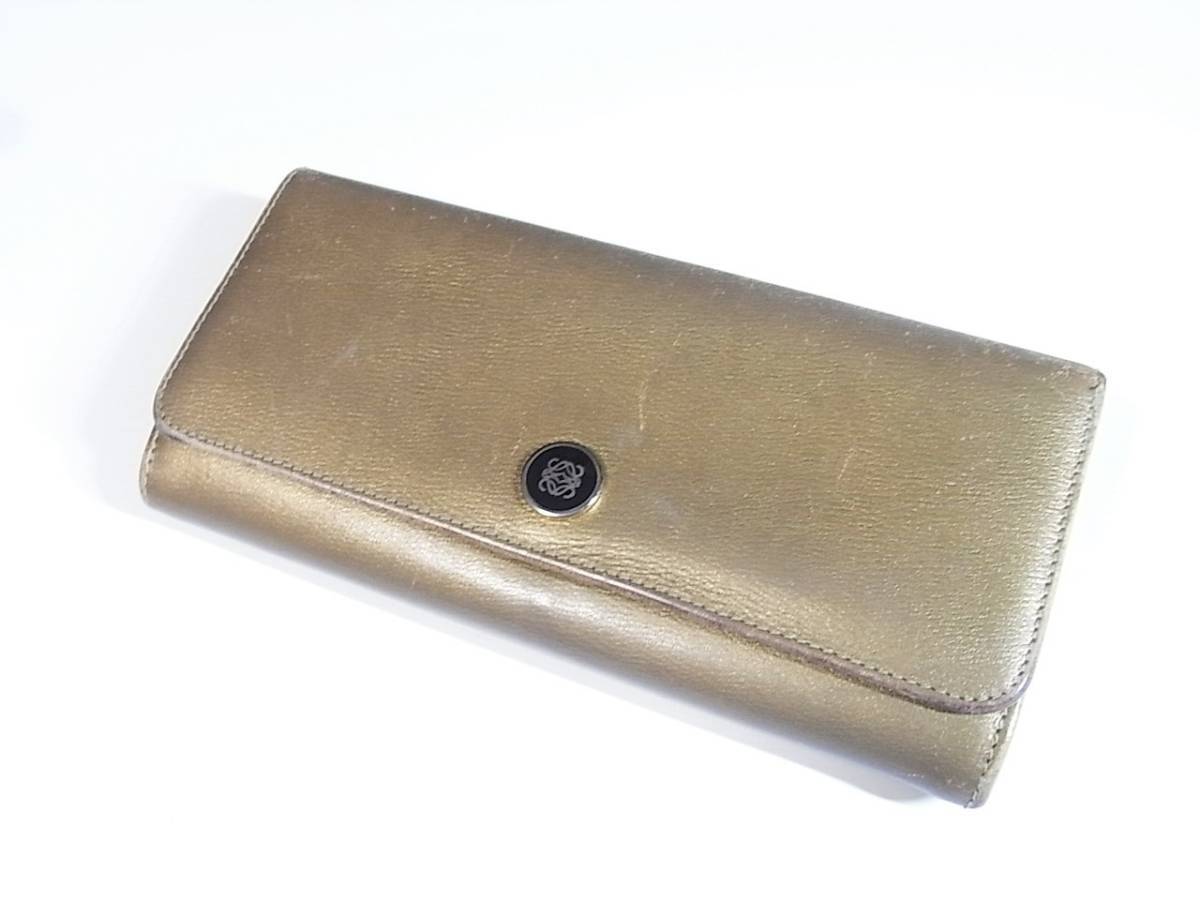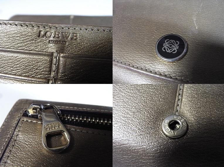 ロエベ アナグラム カーフ製小銭入れ付き長財布 マッドゴールド