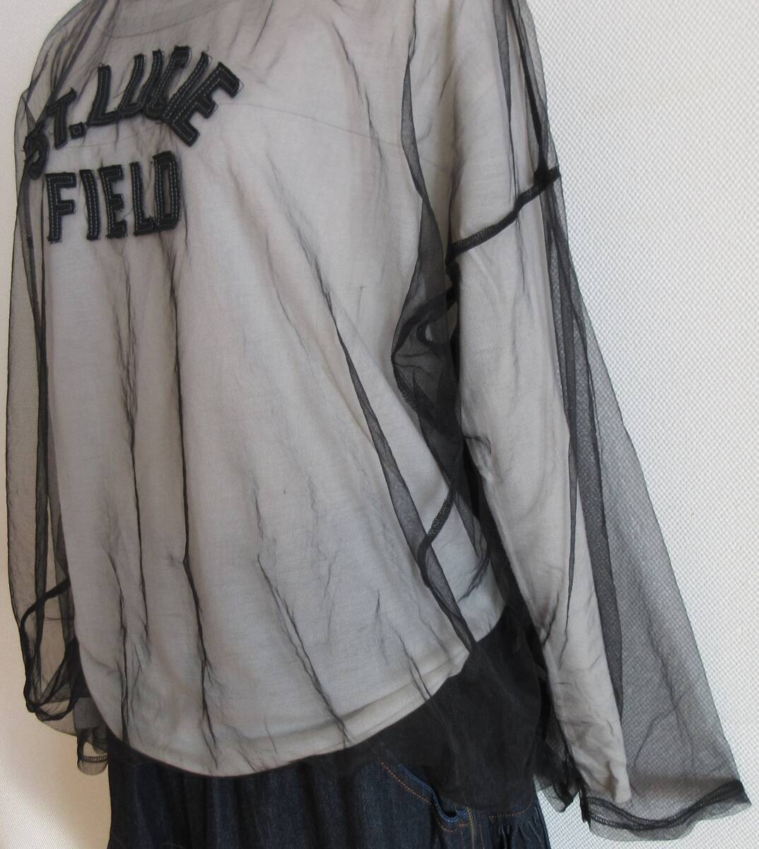 *背面と左胸の下あたりに引掛けがございます。 製品の特性上ひきつりが起きやすいチュールTシャツになります。