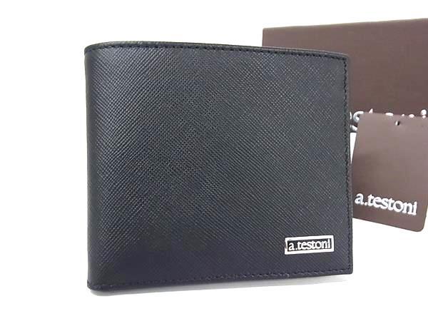 ■新品■未使用■ a.testoni ア テストーニ レザー 二つ折り 財布 ウォレット 札入れ カード入れ メンズ ブラック系 BI6733