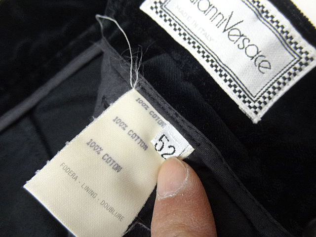 ジャンニヴェルサーチ 90S イタリア製 黒 ブラック ベロア ベルベット 2連 ベルト ループ タック デザイン スラックス パンツ 無地 サイズ
