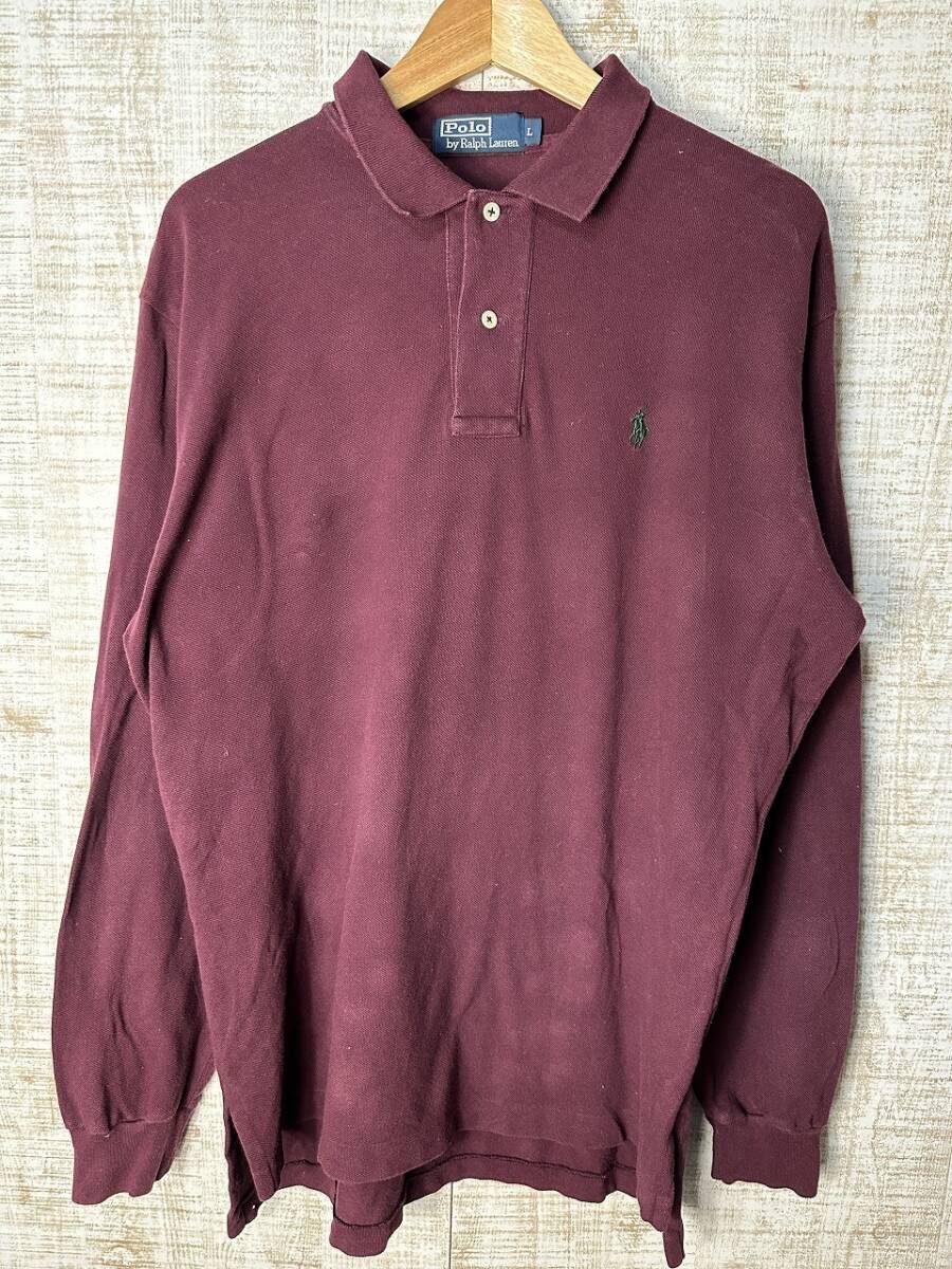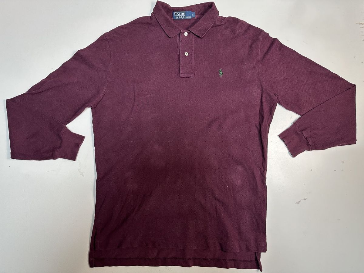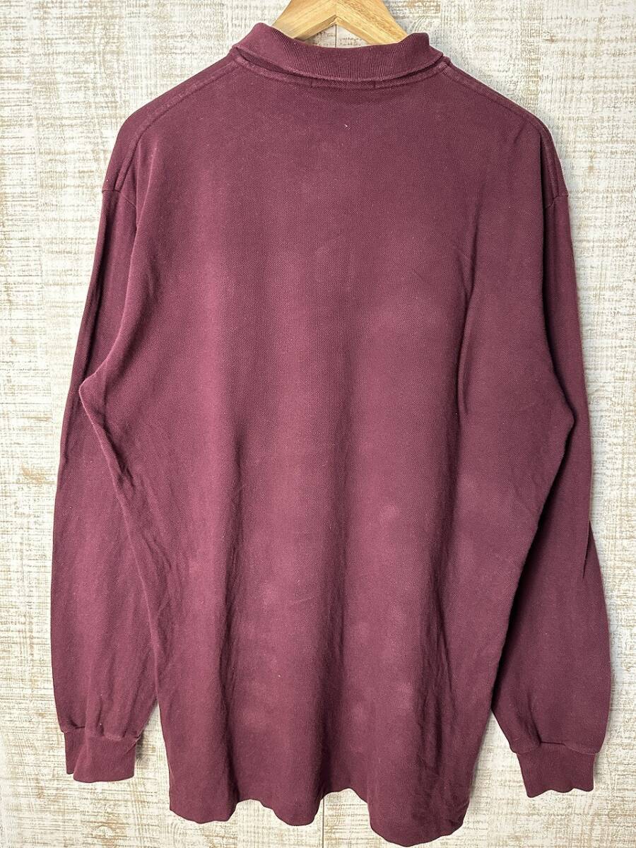 ●US USED POLO Ralph Lauren ラルフローレン ポロシャツ ポニーロゴ刺繍 長袖 エンジ赤系【L】コットン