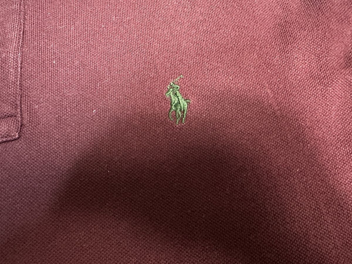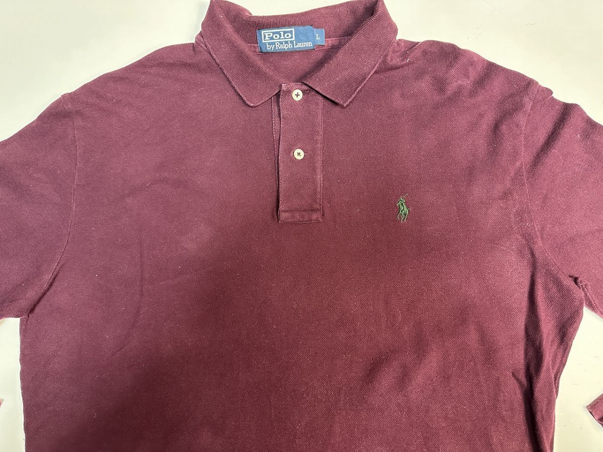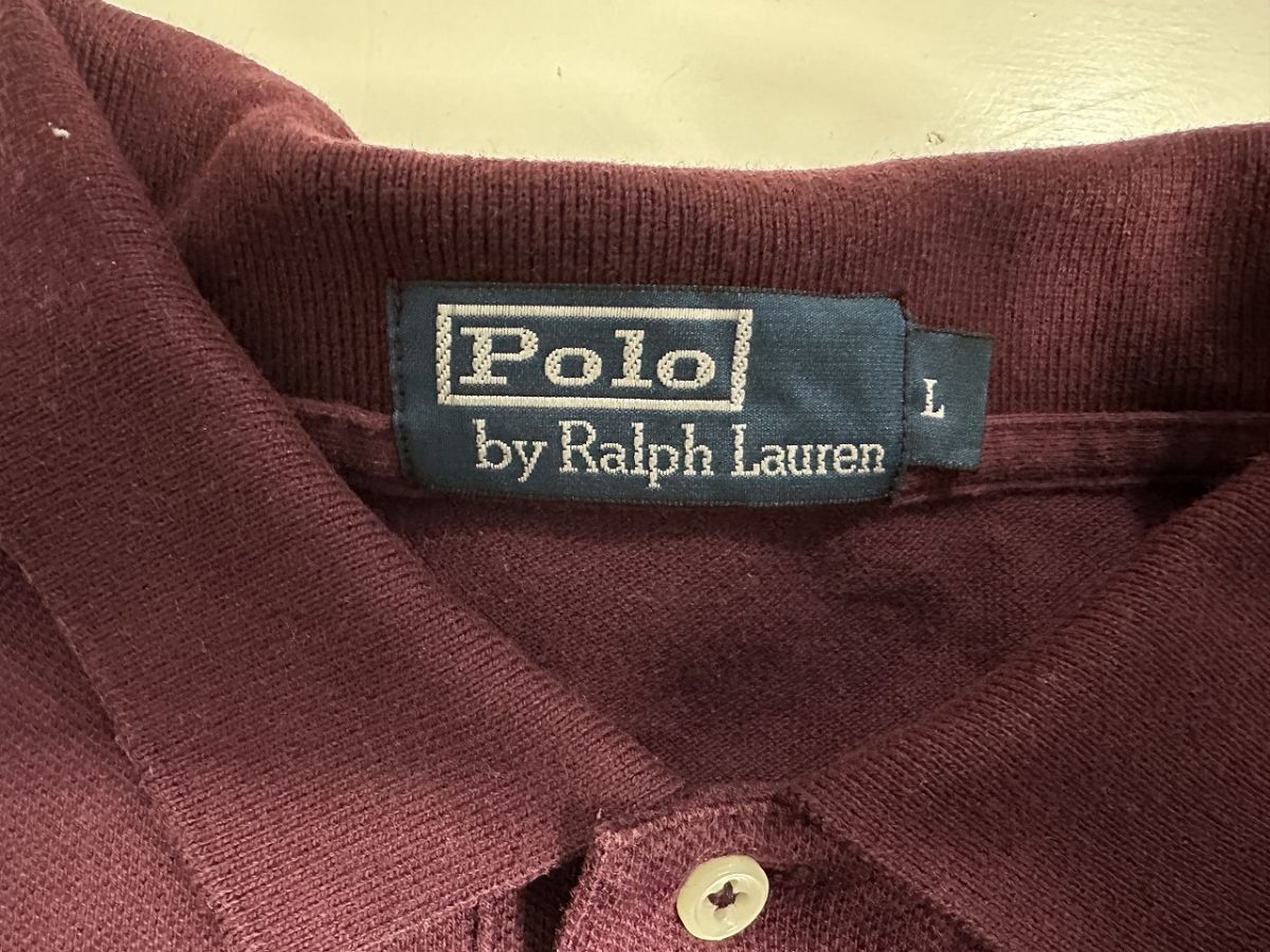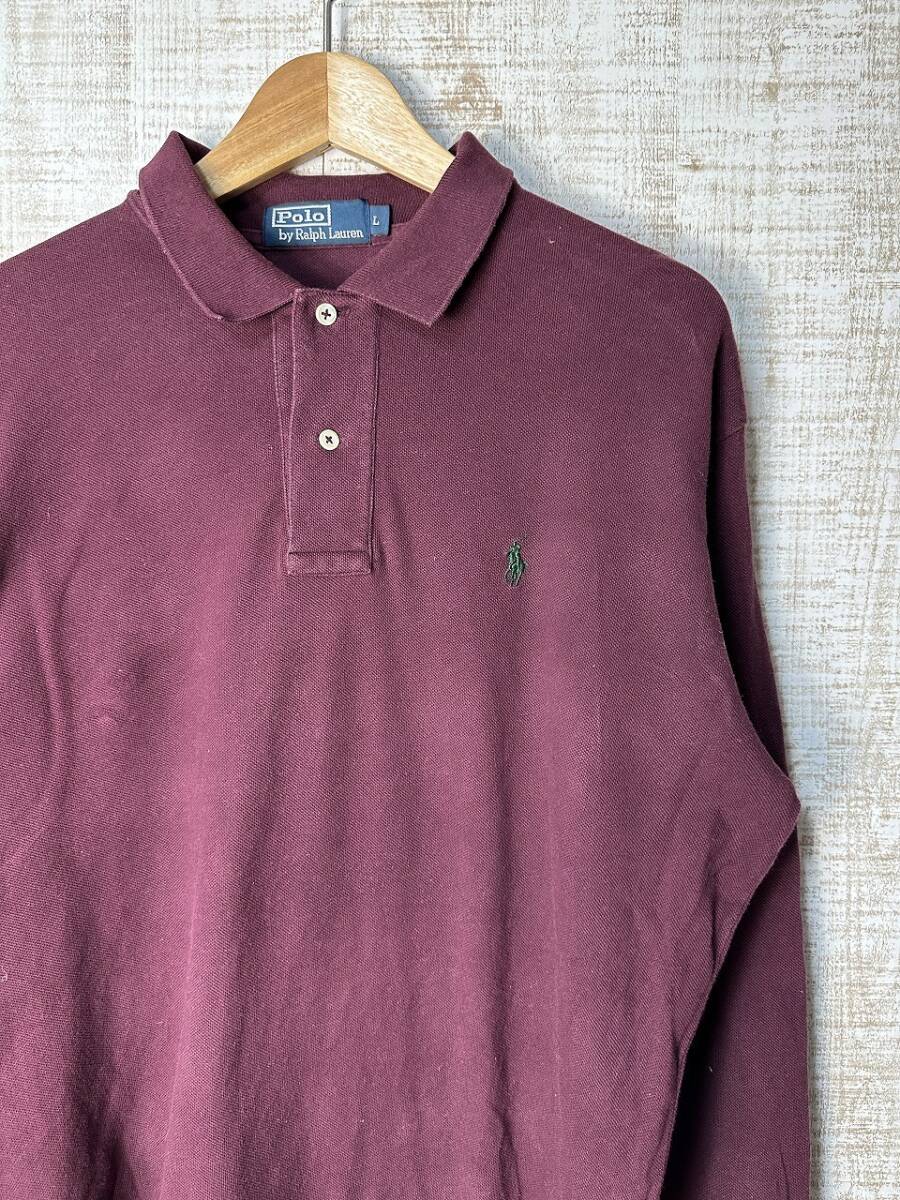 ●US USED POLO Ralph Lauren ラルフローレン ポロシャツ ポニーロゴ刺繍 長袖 エンジ赤系【L】コットン