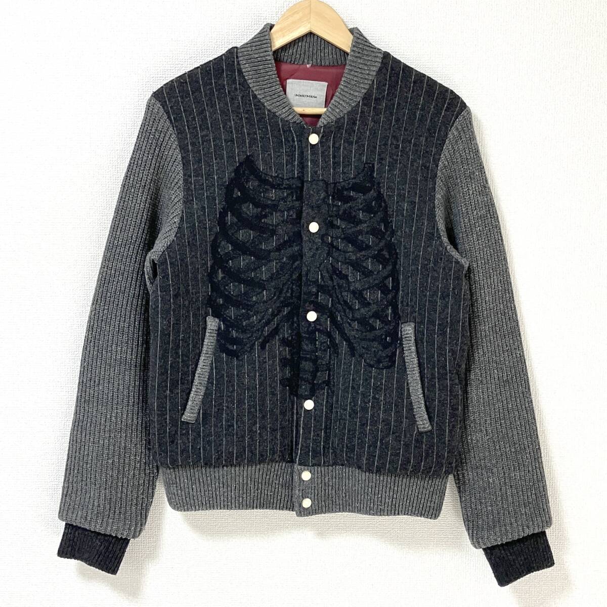 レア サンプル品 UNDERCOVER スケルトン 肋骨 ニット スタジャン グレー 3サイズ アンダーカバー ジャケット ブルゾン スカル archive 1617