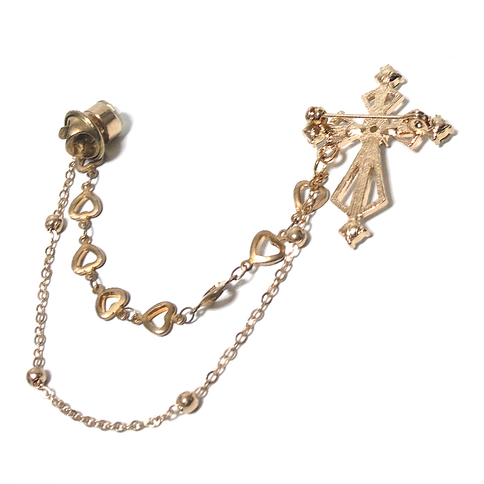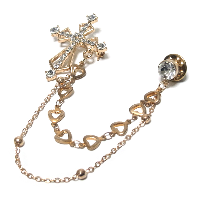 ラペルピン★ピンズ★ブローチ チェーン 十字架 クロス ゴールド pin-1704