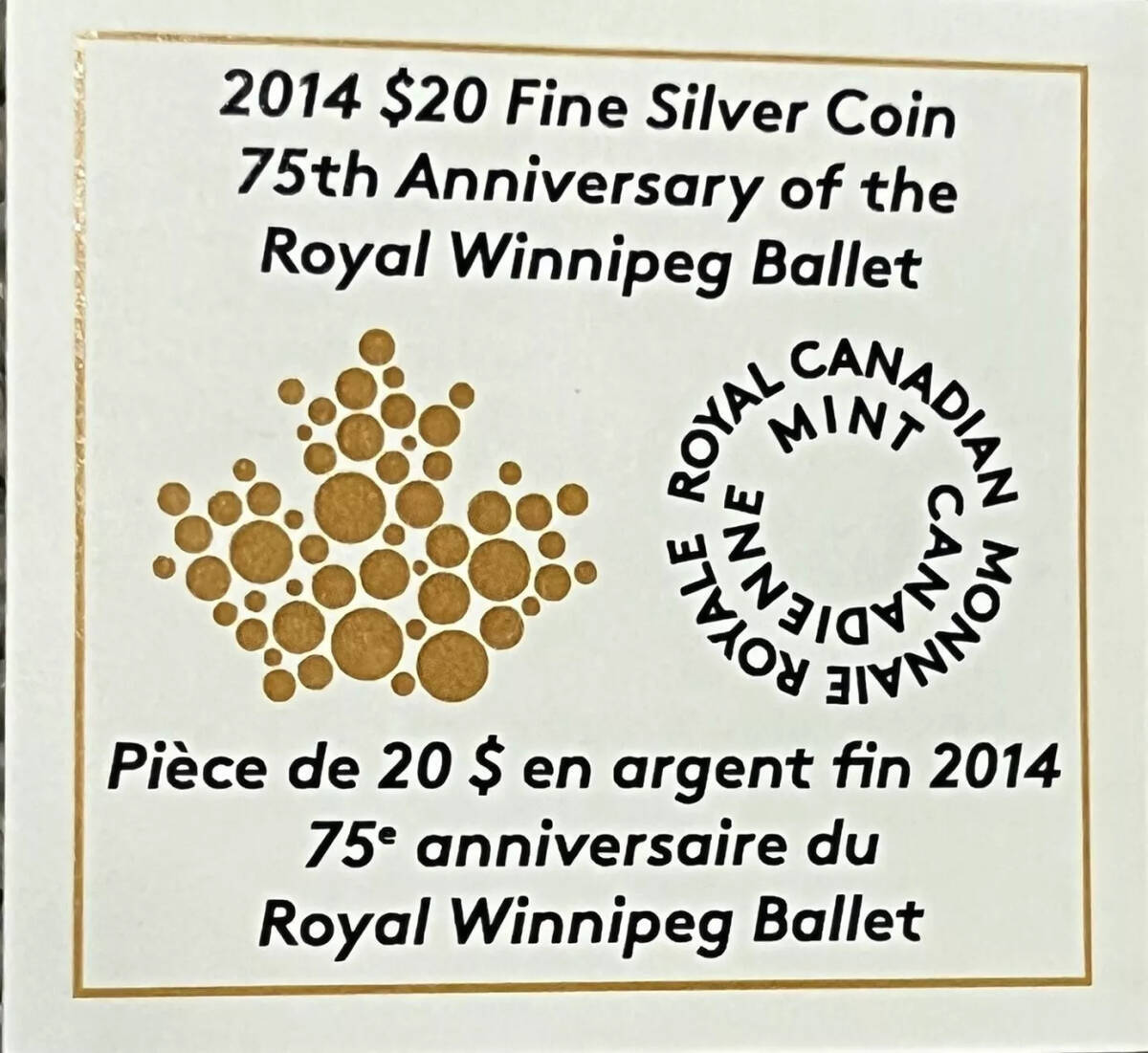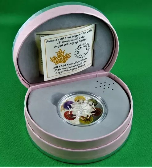 2014年1オンス PROOF銀貨 カナダ20ドル銀貨-ロイヤル・ウィニペグ・バレエ団創立75周年記念超綺麗!在庫1枚のみ
