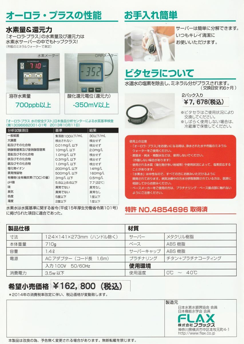 未使用品★水素水サーバー オーロラPLUS オーロラプラス 簡単に作れる。毎日続けられる。美容と健康を考える家族のための水素水サーバー