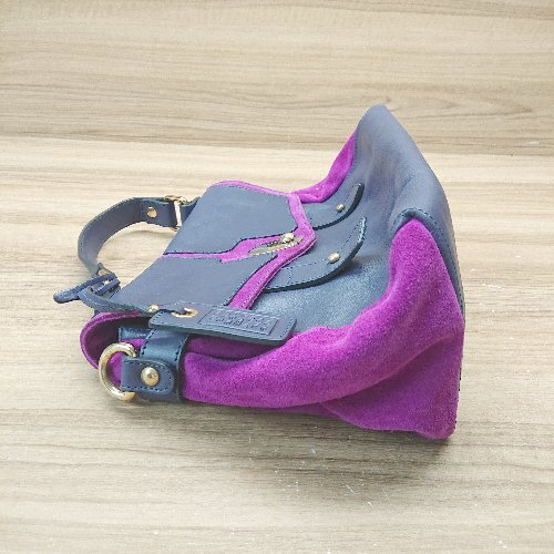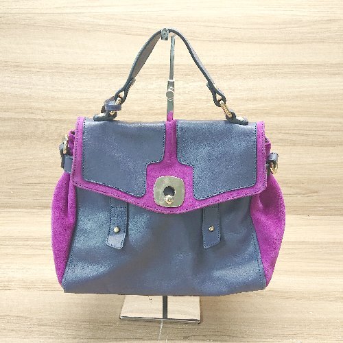 ◇ ◎ marchio depositato 2way ショルダー ハンド 異素材 バイカラー おしゃれ バッグ ブルー/パープル レディース E
