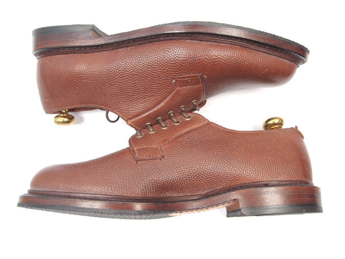 アッパーの状態も 保存に伴う若干の擦れ等はございますが非常にきれいです。履き皺等もついていません。アレンクオリティーというかヒールの耳の処理が少し雑です。使用には問題ないと思います。マレ罹患シューズらしいといえばそうですが、画像参考ください。