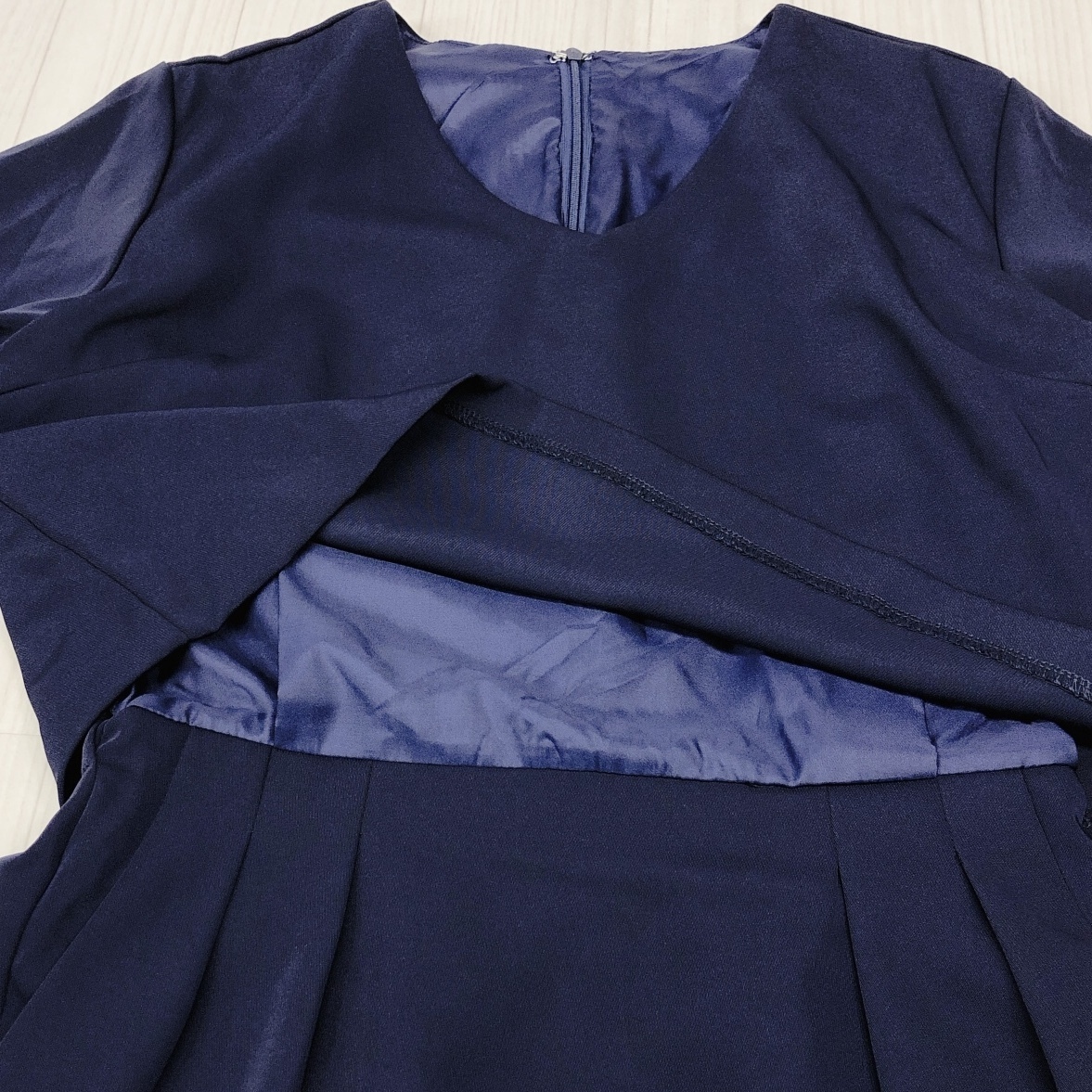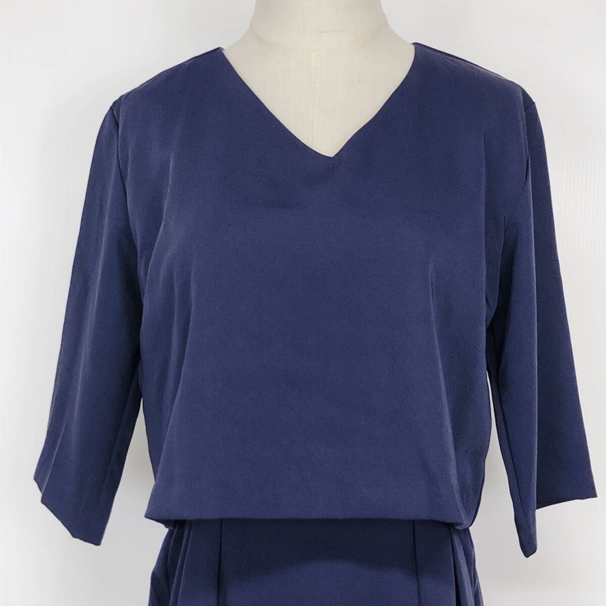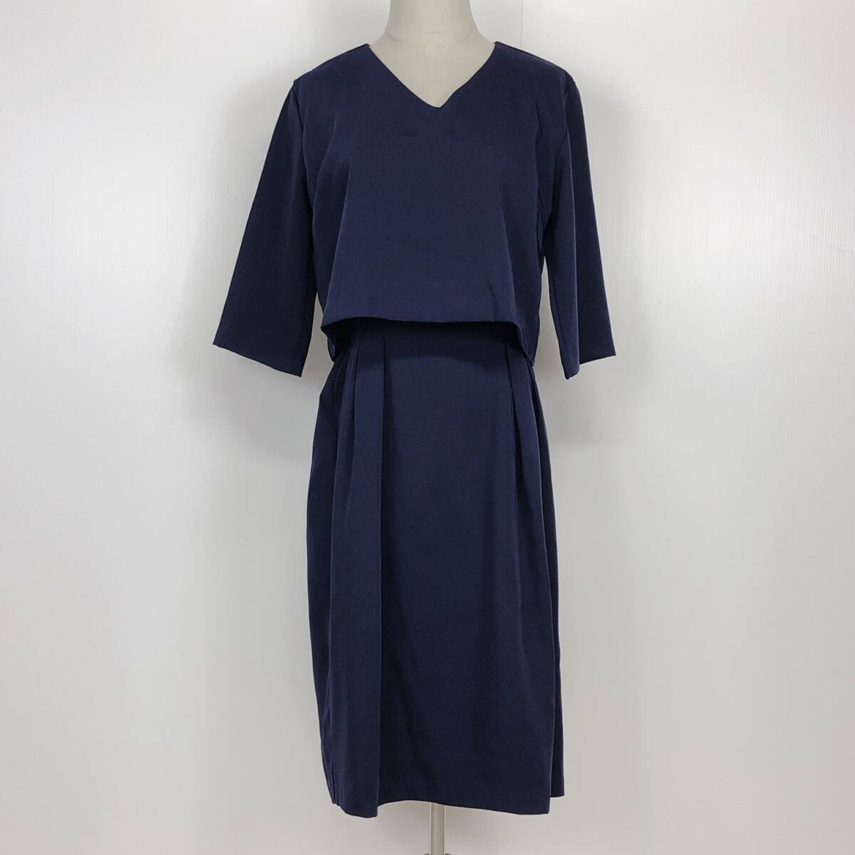 YX1121 美品 urs レディース ワンピース ひざ丈ワンピース 長袖 薄手 ファスナー Vネック サイズL シンプル エレガント シック 春夏秋