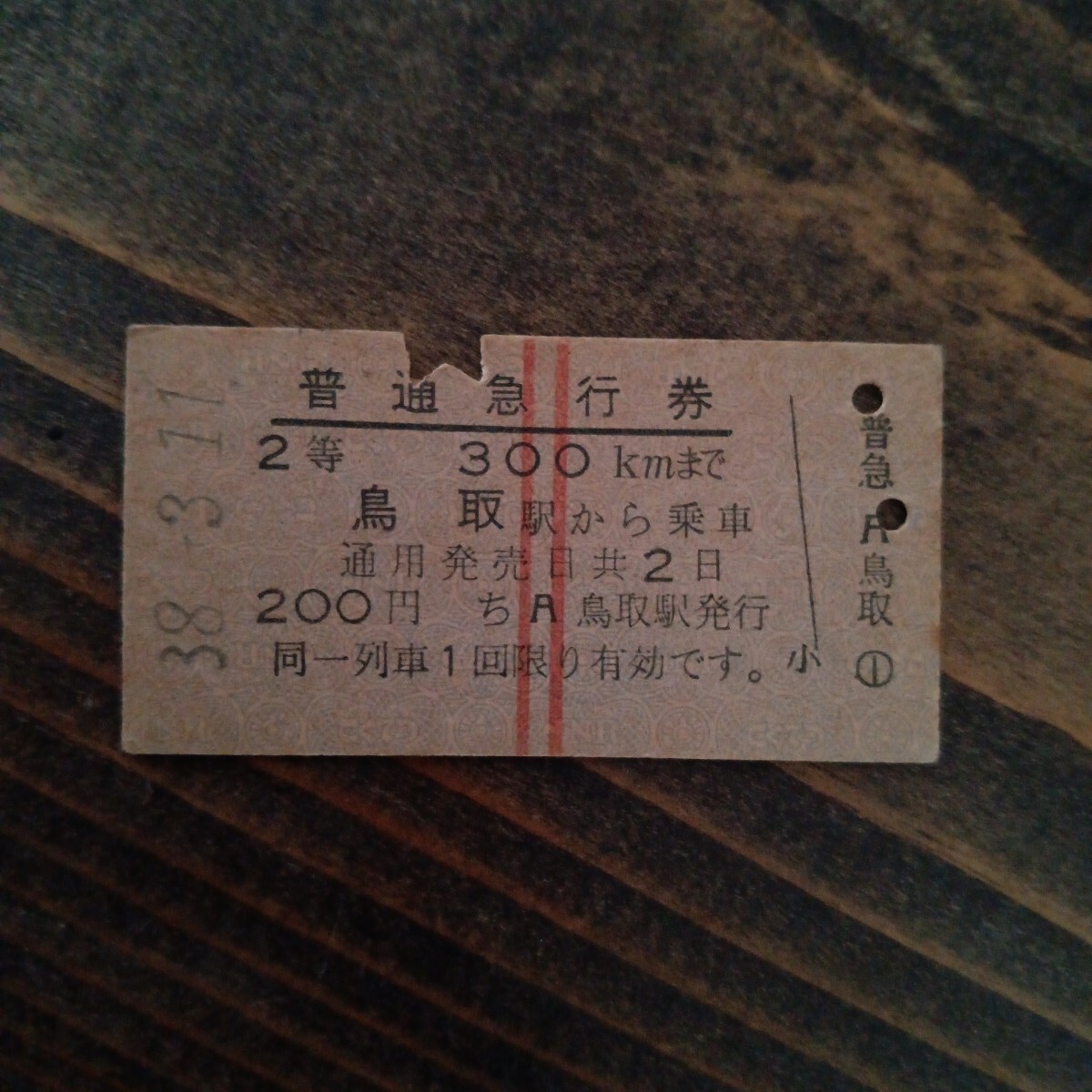 古い切符 硬券 切符 A型硬券 普通急行券 乗車券 2等 鳥取駅から300km 鳥取駅発行 S38(赤線2本 鉄道資料 鉄道コレクション)