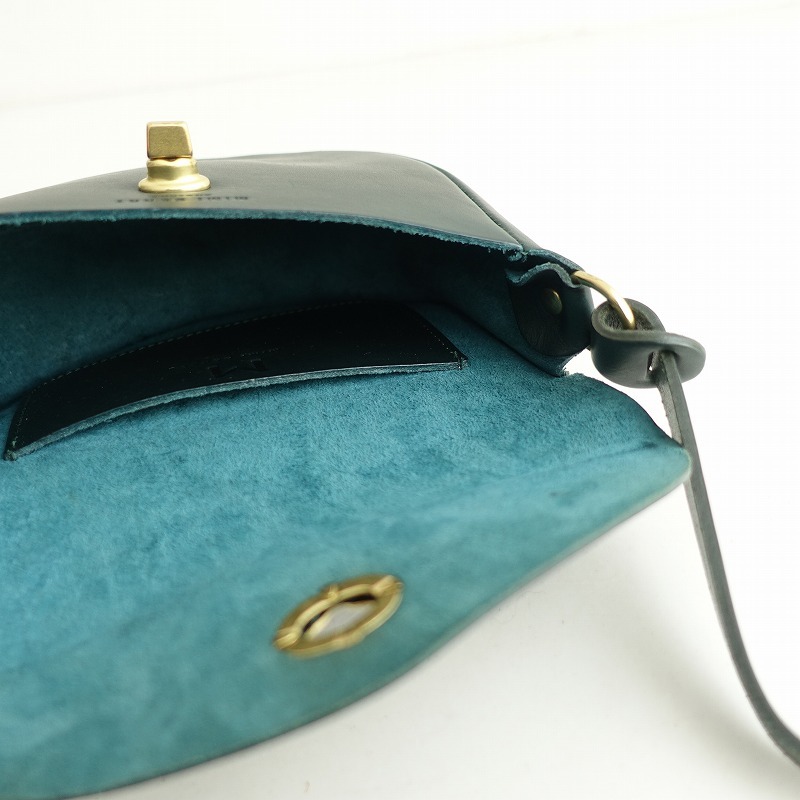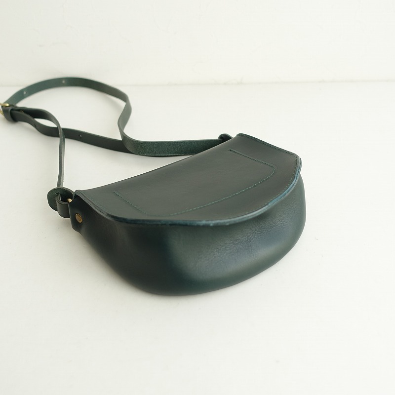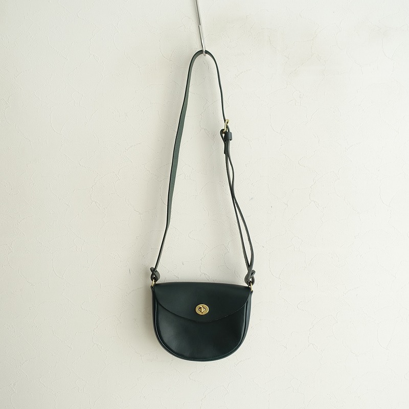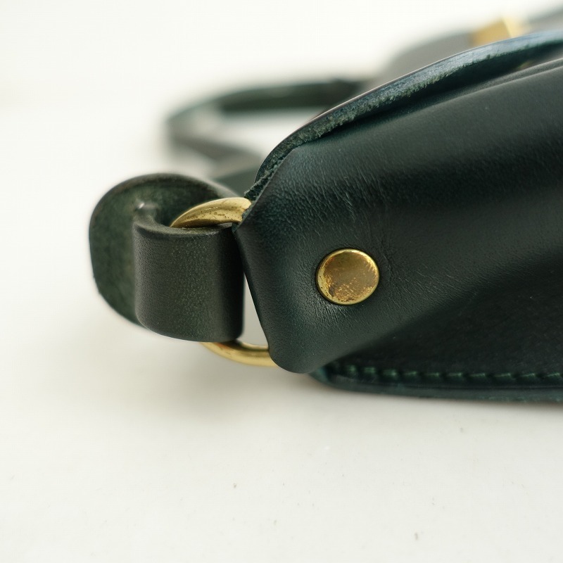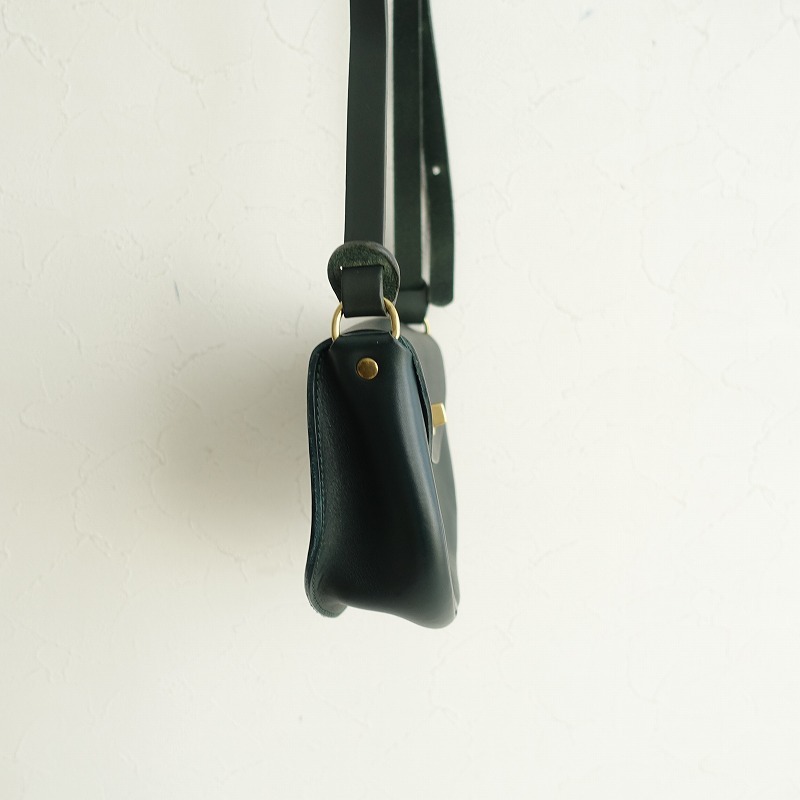 MIMI BERRYのFURZEY GRAINYです。カラーはダークグリーンで、開口は金具留めのフラップタイプです。内側にオープンポケットが1個あり、ショルダーは長さ調節できます。定価(メーカー希望小売価格)38,500円のお品物です。 |