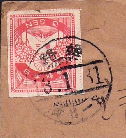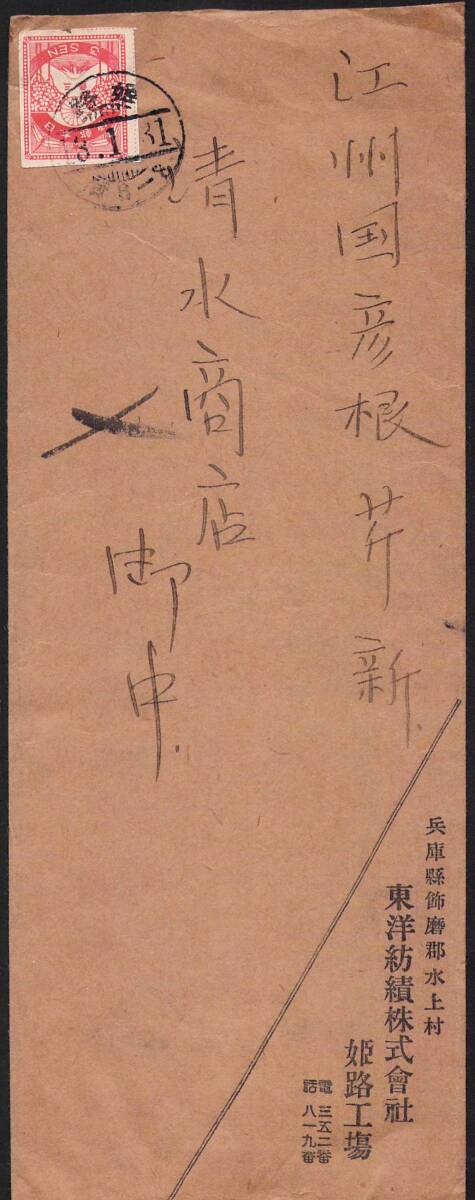 ★ 震災3銭貼封下部に三角型社名入り ★ 姫路13.1.31消印 ★25966★