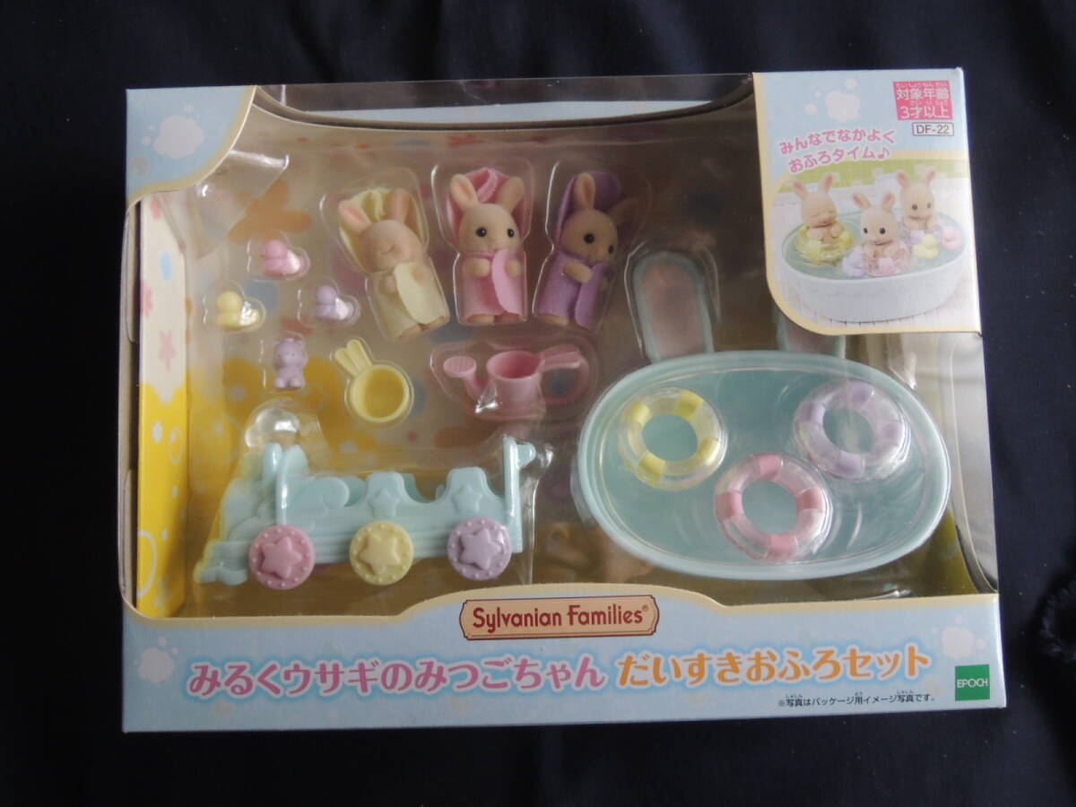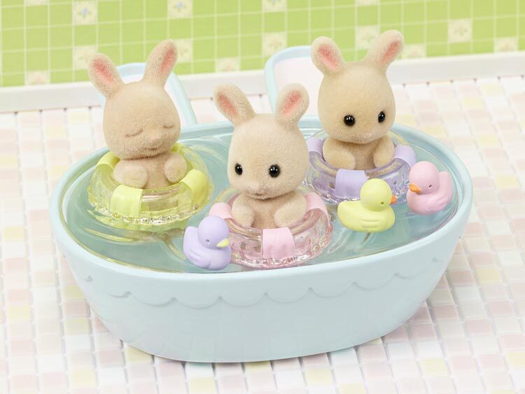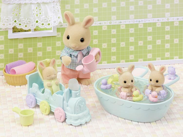 | W200×D55×H170mm ・小さくてかわいい、みるくウサギのみつごちゃんの、おふろお世話遊びが楽しめるセットです。 ・みつごちゃんをおふろにつれていくための手押し車が付いています。 ・おふろ小物もたくさんついています。 ・みつごちゃんはそれぞれ顔の表情が異なります。 【セット内容】 みるくウサギのみつごちゃん (にこにこ ピンク服)、みるくウサギのみつごちゃん(おすまし パープル服)、みるくウサギのみつごちゃん(おねむり イエロー服)、ベビーバス、水面パーツ、汽車の手押しぐるま、シャンプー、手おけ、ジョウロ、アヒルのおもちゃ(ピンク)、アヒルのおもちゃ(イエロー)、アヒルのおもちゃ(パープル) |