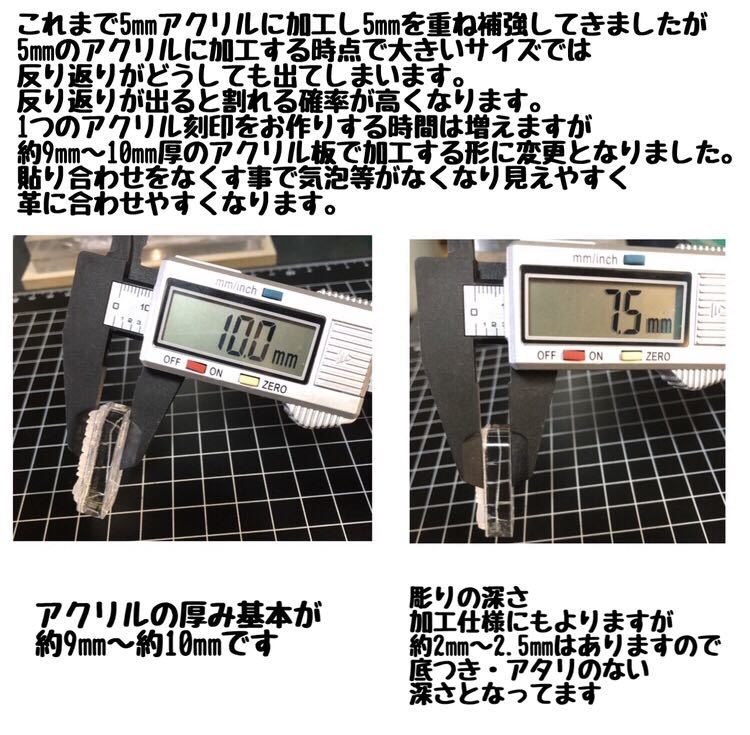 全て手元にあるアクリル刻印のみを出品致しますが、仕事の都合で発送までに2~3日ちょうだいしております。