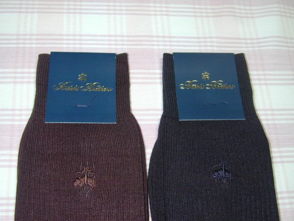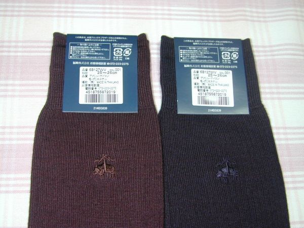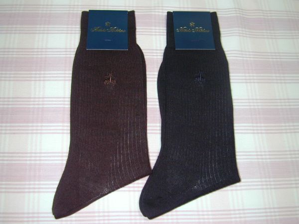 ブルックスブラザーズ*濃紺&茶 リブ柄ビジネスソックス靴下2点/25-26cm