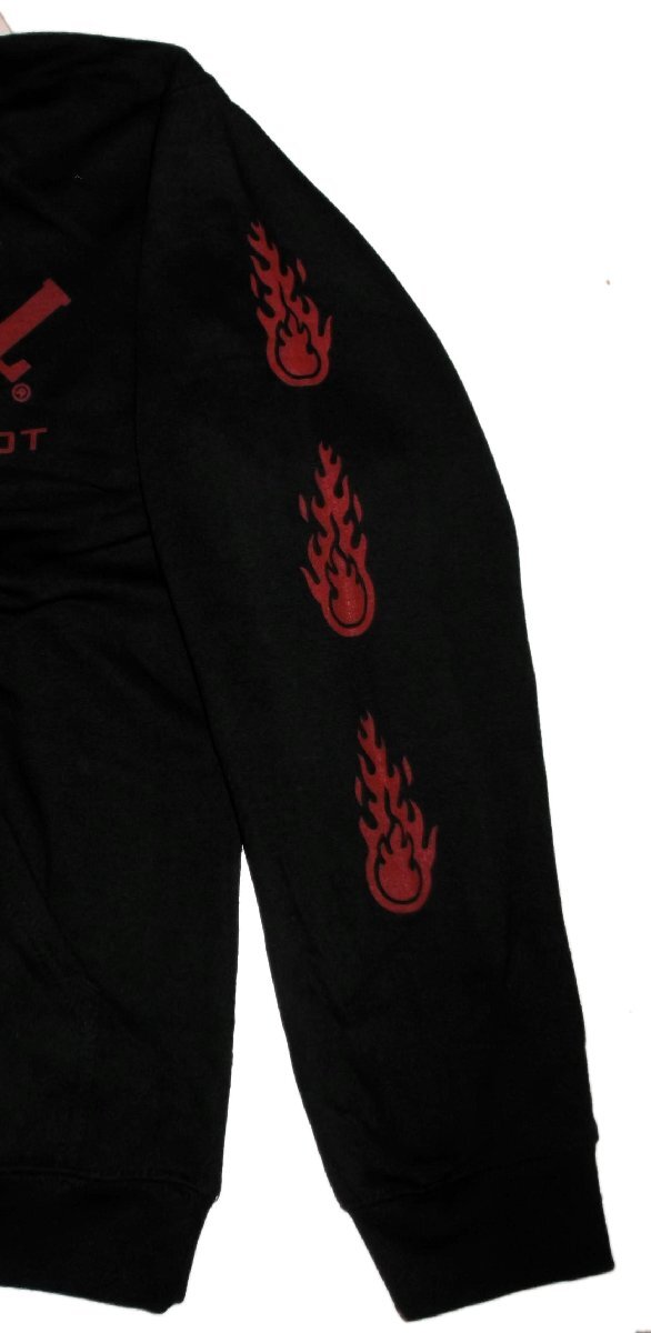 | Fireball Whisky Dragon Hooded Sweatshirt - Black When it comes to delivering a bold and spicy twist, the world famous Fireball Cinnamon Whisky is always up to the challenge! We've paid tribute to the "Red Hot" concoction with an eye-catching hoodie of its very own featuring the lightly distressed Fireball Whisky dragon logo on the chest, along with striking red fireball graphics on the left sleeve. To ensure that you're always wrapped in warmth, this design is printed on a soft, poly-cotton black hooded sweatshirt. Poly/Cotton Soft Touch Material Machine Wash Tumble Dry Pullover Hoodie With Front Pocket Printed in USA 1980年代半ばにカナダで誕生した、サゼラック社が製造するシナモンフレーバーのカナディアンウイスキー、 「ファイアボールウイスキー」のパーカ「FIREBALL WHISKY DRAGON LOGO Hooded Sweatshirt 」 長い間カナダ国外ではほとんど知られることがなかったファイアボールウイスキーは、 北極圏の爆風からウォームアップするためのカナダのバーテンダーの努力によって誕生したという逸話を持ち 現在においては数十年で最も成功した酒類ブランドの1つとして米国で最も売れているウイスキーブランドに成長しています。 フロントにボトルに貼られている、火の玉を吐くドラゴン・ラベル 片袖には火の玉・ファイアーボールの3連プリント! デザイン自体が非常にカッコいいです! Color: Black 新品・正規品 Mサイズ 170cm~175cm位の方に良いかと思われます。肩幅56cm, 身幅54cm,着丈63cm,袖丈61cm MOONEYES、Sailor Jerry等~アメキャラ・企業ロゴTシャツ等ライセンスアイテム、ラットフィンク関連品、バンドTシャツ等取り扱っております。 ** 他にも色々出品中です。 CWLPpC IWTS | |||||||