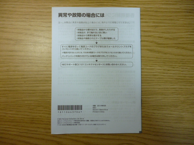 300円即決!! 送料185円~!! NEC VALUESTAR LaVie シリーズ共通 セットアップマニュアル 中古 VALUESTAR VS370/Sの付属品です 必要な方へ ⑥