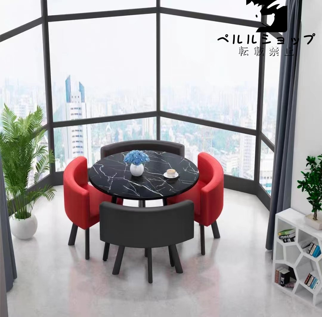 贅沢品★希少新品★多機能 丸テーブルと椅子 5枚セット テーブルと椅子の組み合わせ 商談 役員応接 会議テーブル