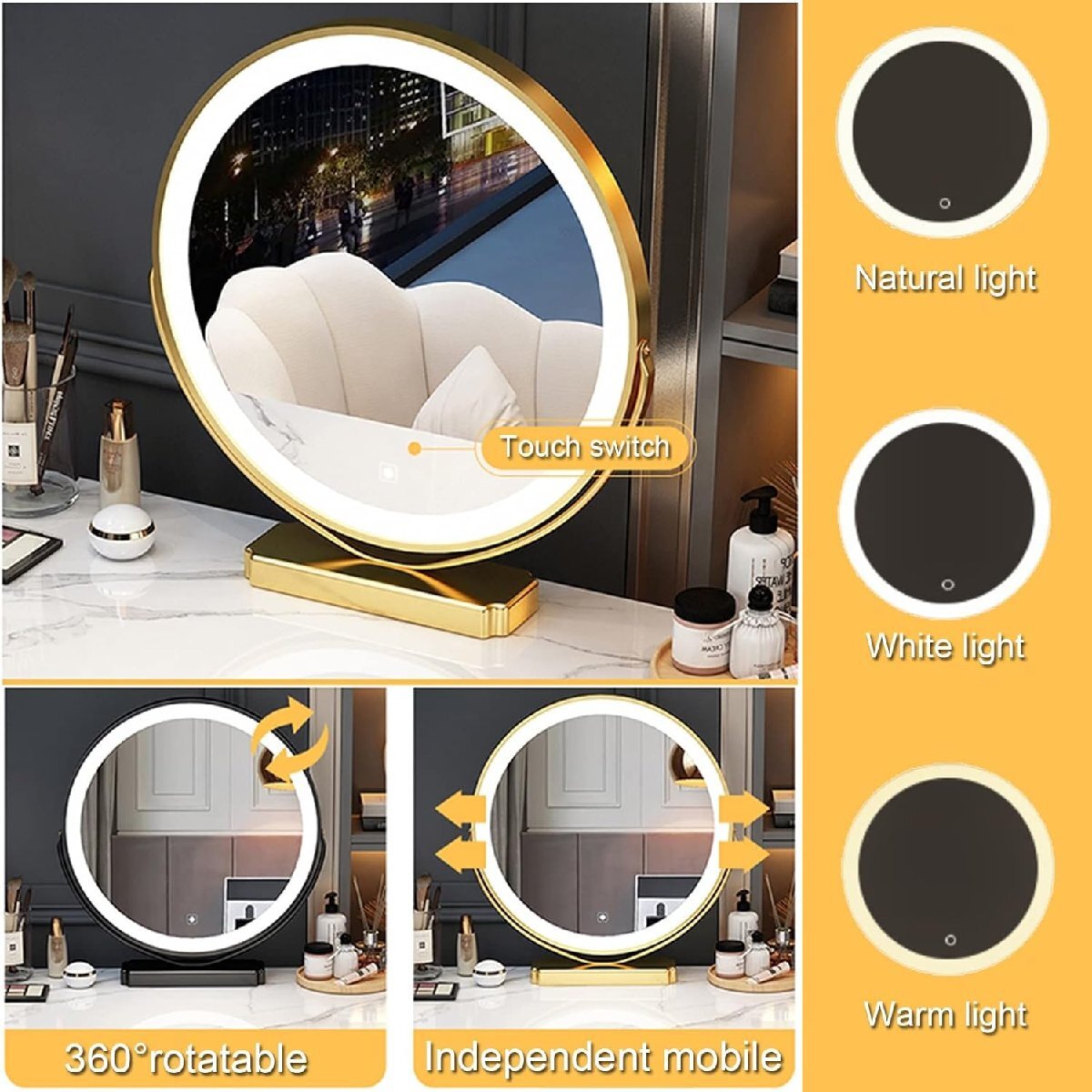 * バニティミラーのサイズ: 45x45cm/17.7インチx17.7インチ。