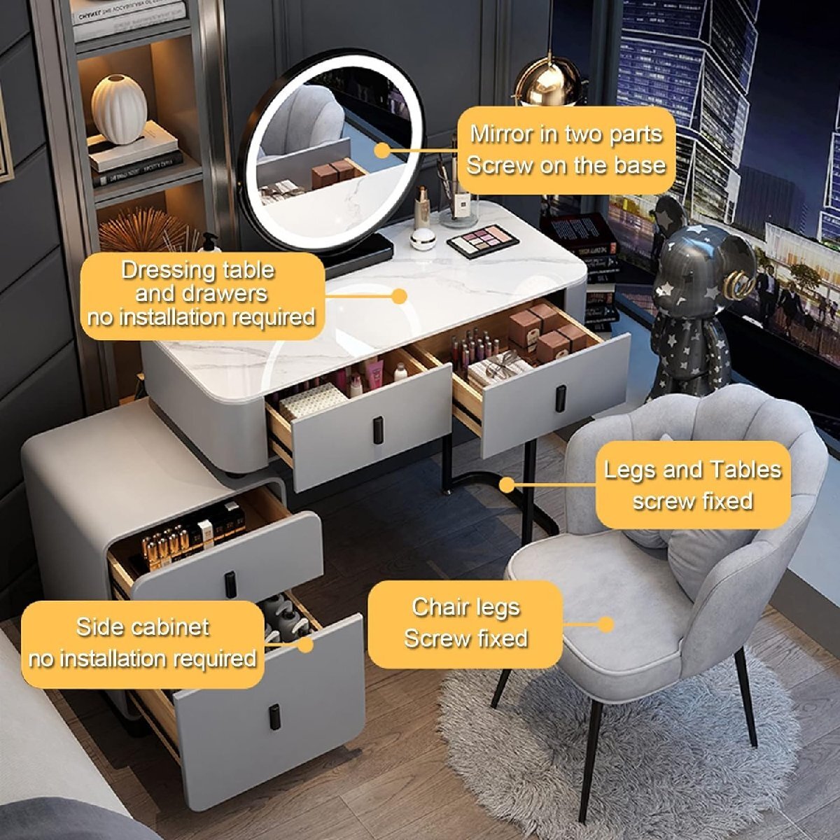 ◆ ベッドサイドテーブルとドレッシングテーブルの絶妙な組み合わせ、格納式デザイン、美しく実用的でありながら豪華です。
