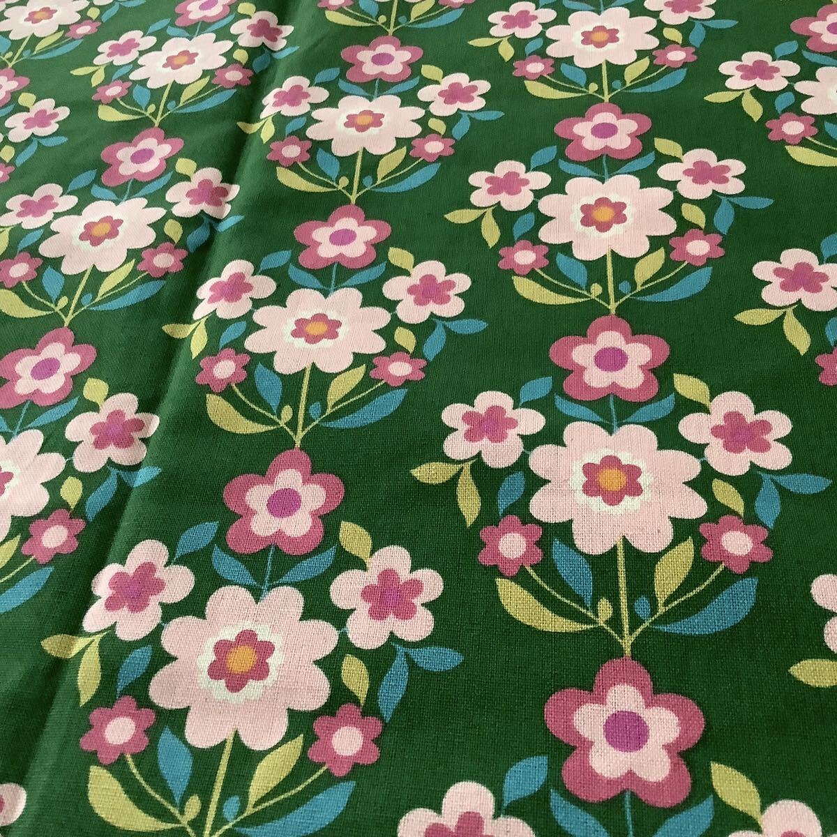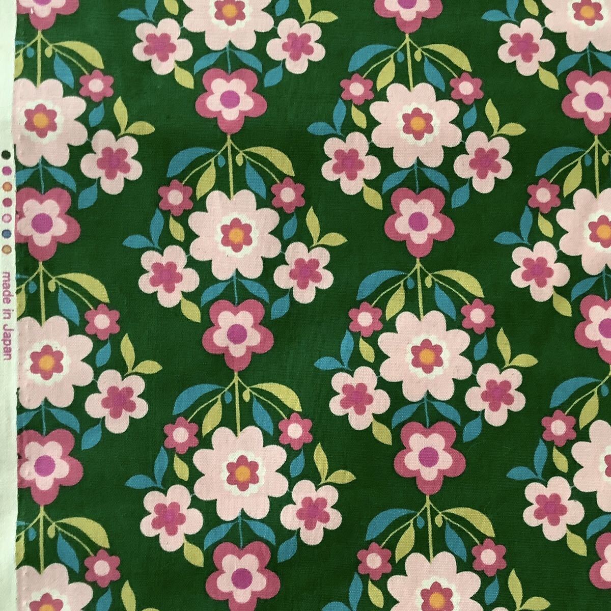 レトロな花柄が可愛いやや薄手の綿麻キャンバス素材です。