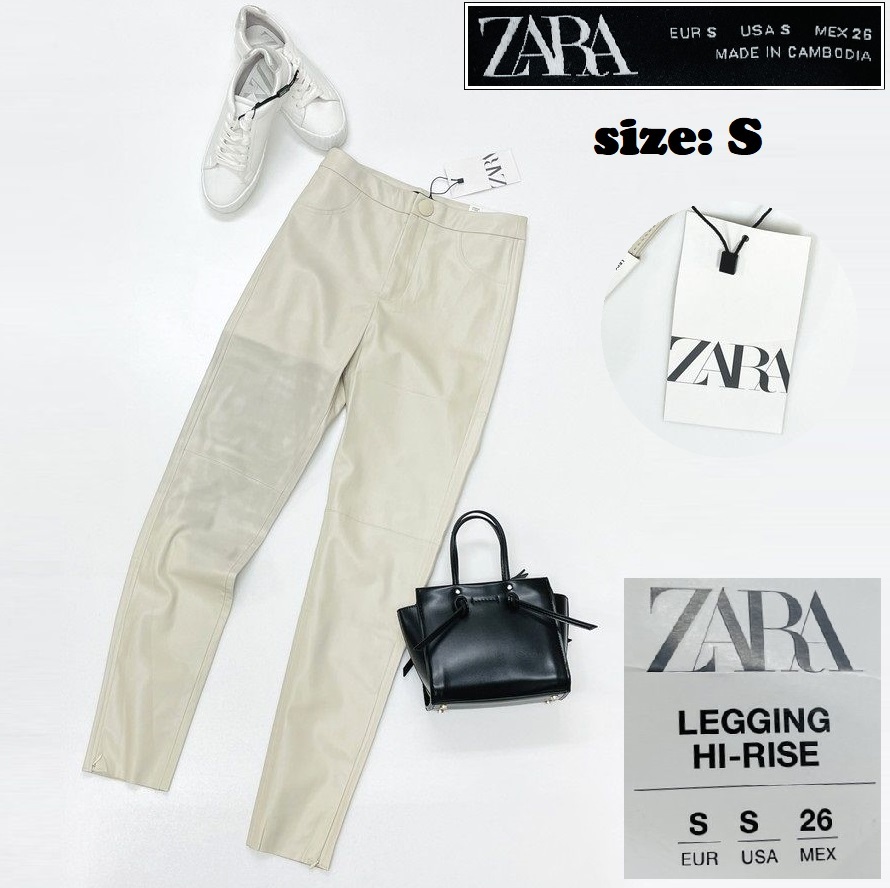 ZARA /S/ ホワイト系 ハイライズレギンスパンツ レディース タグ付き カジュアル フェイクレザーボトム 通勤 大人可愛い生地 デイリー ザラ