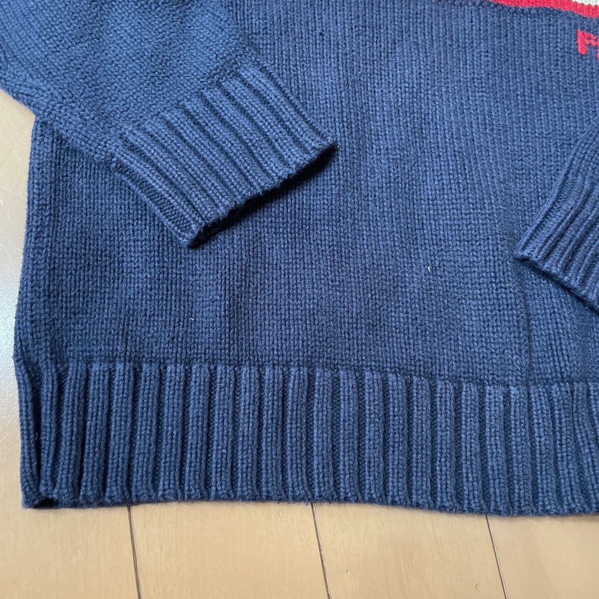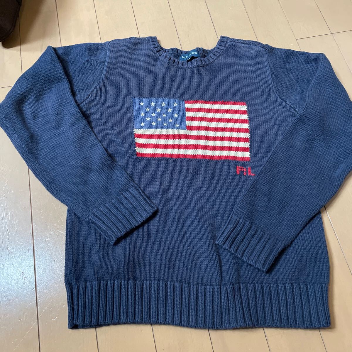 ラルフローレン の星条旗セーターです。使用回数は少ないですが自宅保管が長かった為、全体的に色褪せがあります。袖や裾はありません。その他大きなキズやダメージはありません。