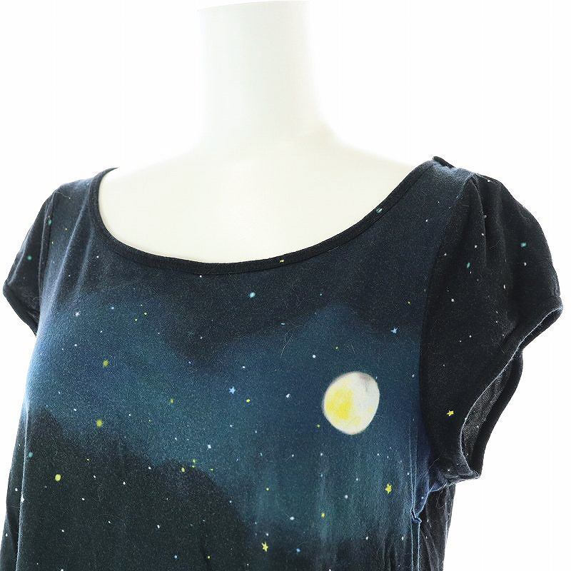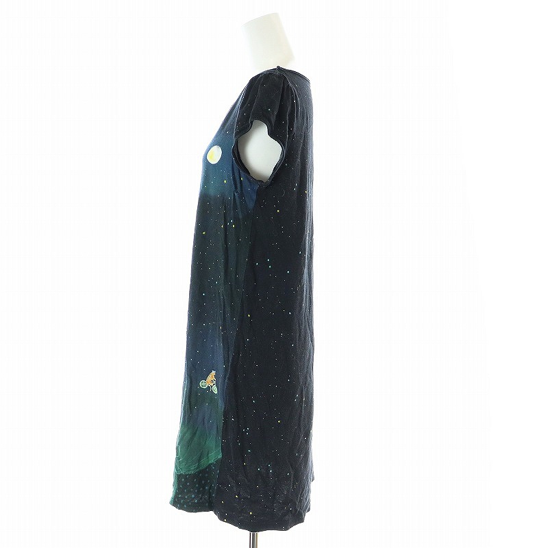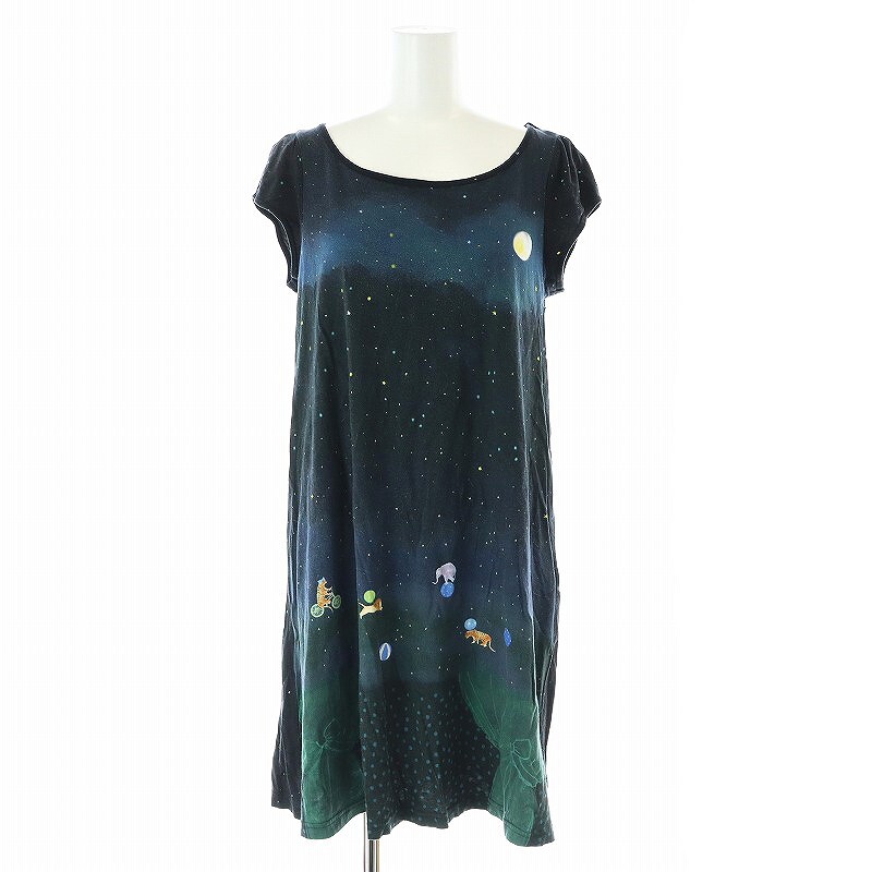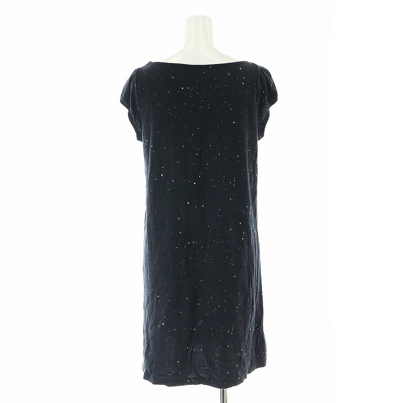 フランシュリッペ franche lippee フレンチスリーブワンピース ひざ丈 半袖 総柄 M 黒 ブラック /AT ■OS レディース
