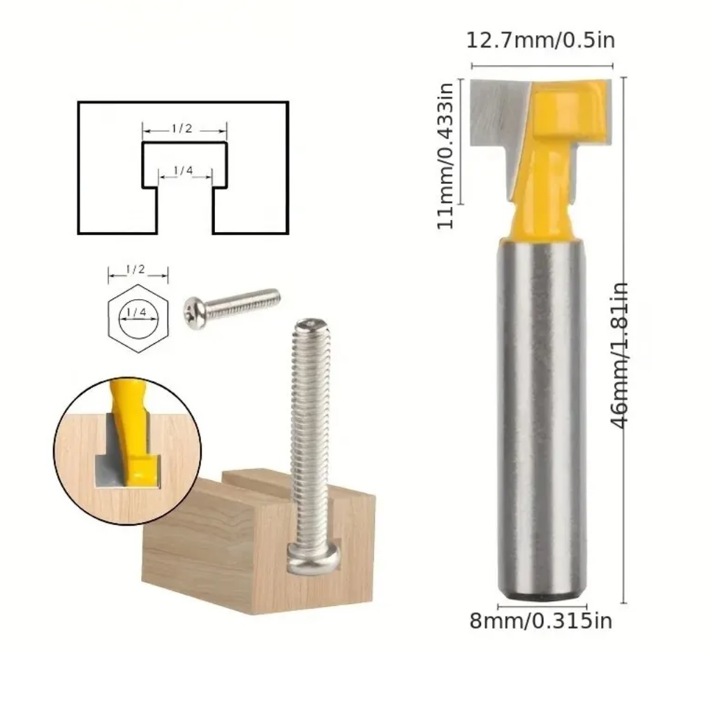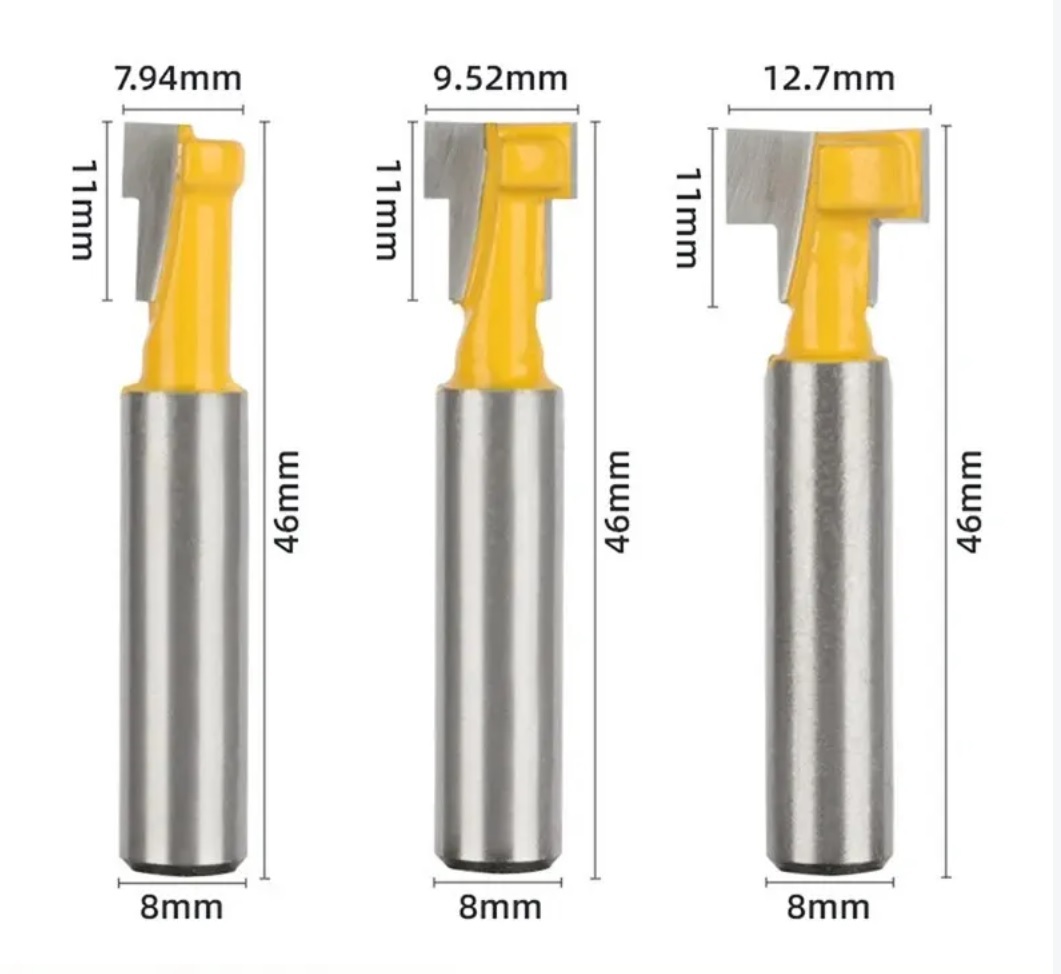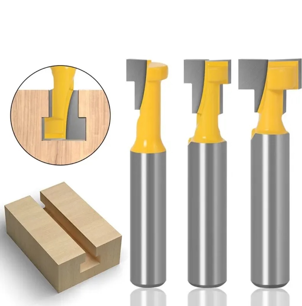 木工 T型溝ルータービット トリマー 軸シャンク8mm カッター エンドミル ロック ハンガー 3本セット