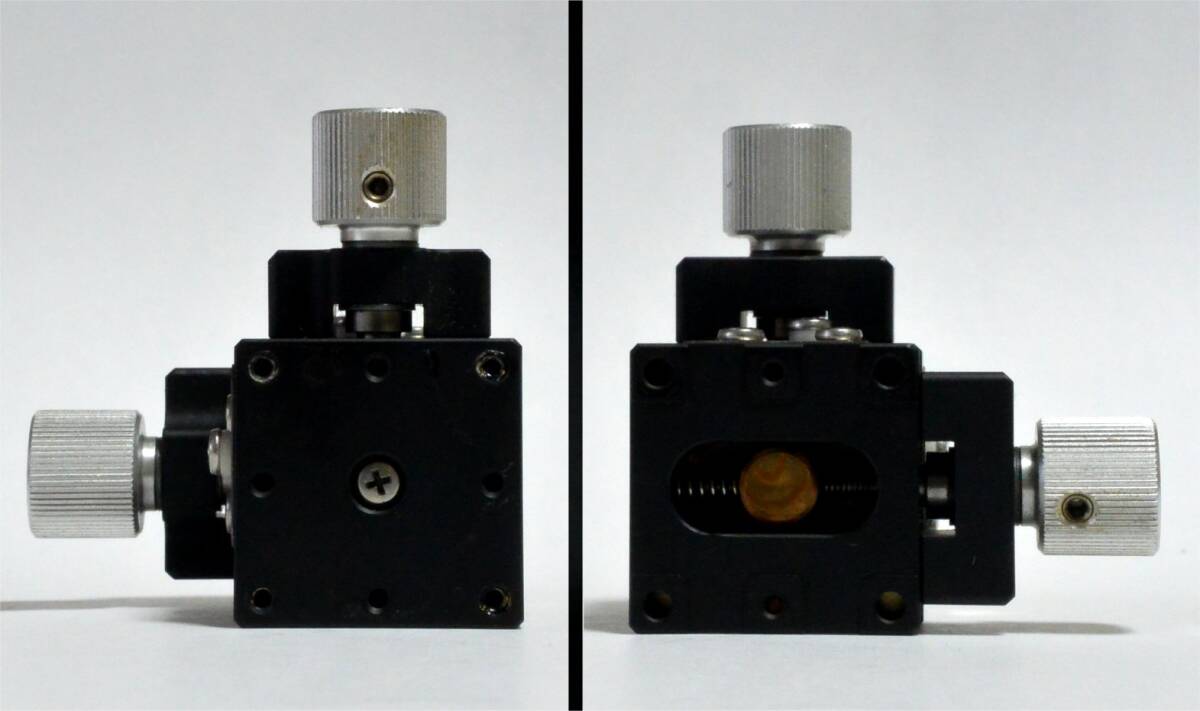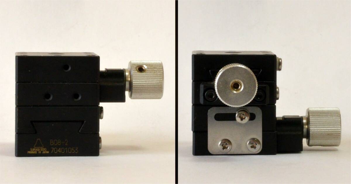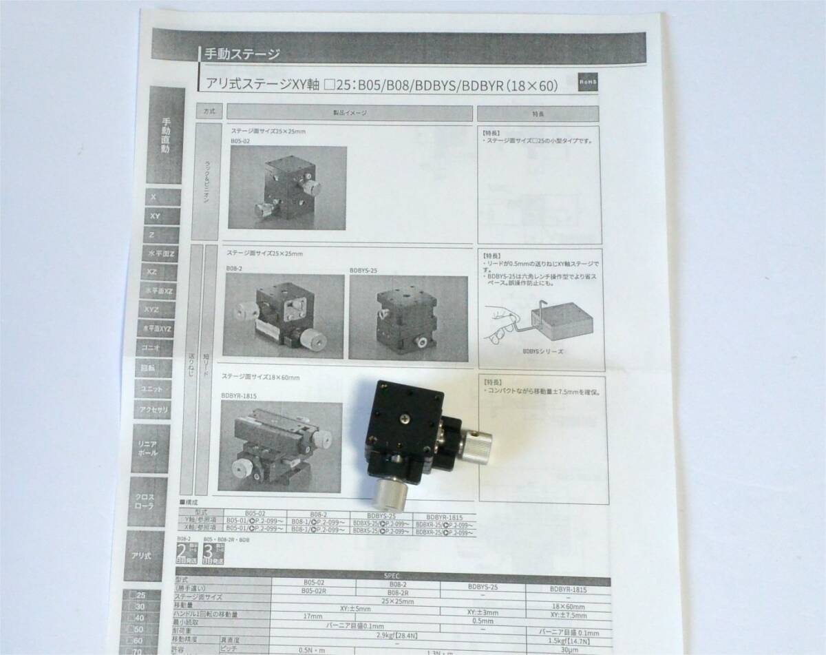 なお、このステージに合う、「□25mm ステージ用 45°傾斜スペーサ」、「□25mm ステージ用 L型ベースプレート」、「□25mm ステージ用 上面プレート」を、別に出品しています。