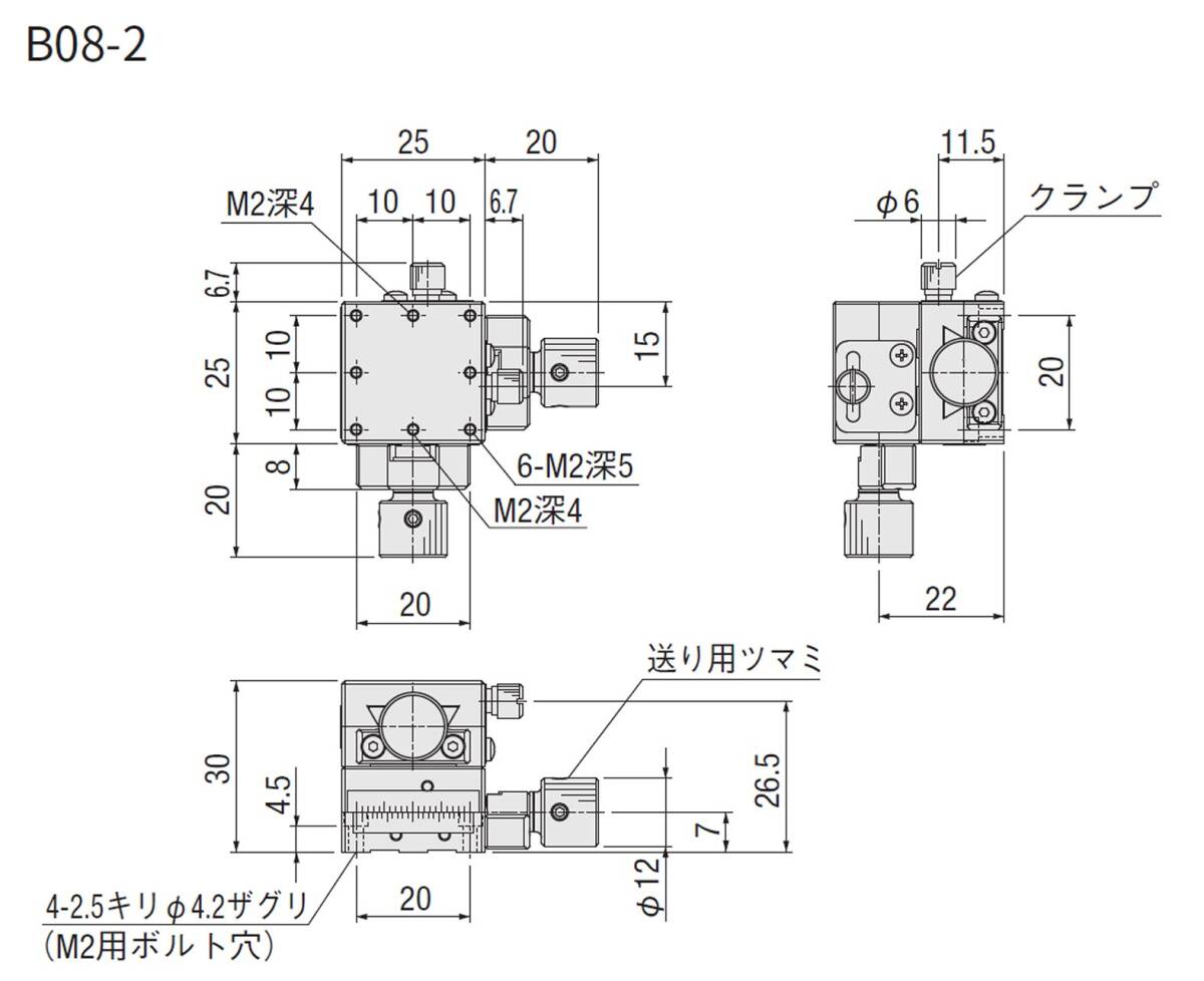 □25mmステージ取付け用の 六角穴付きネジM4-8mm 4本 が付いています。(1枚目写真)