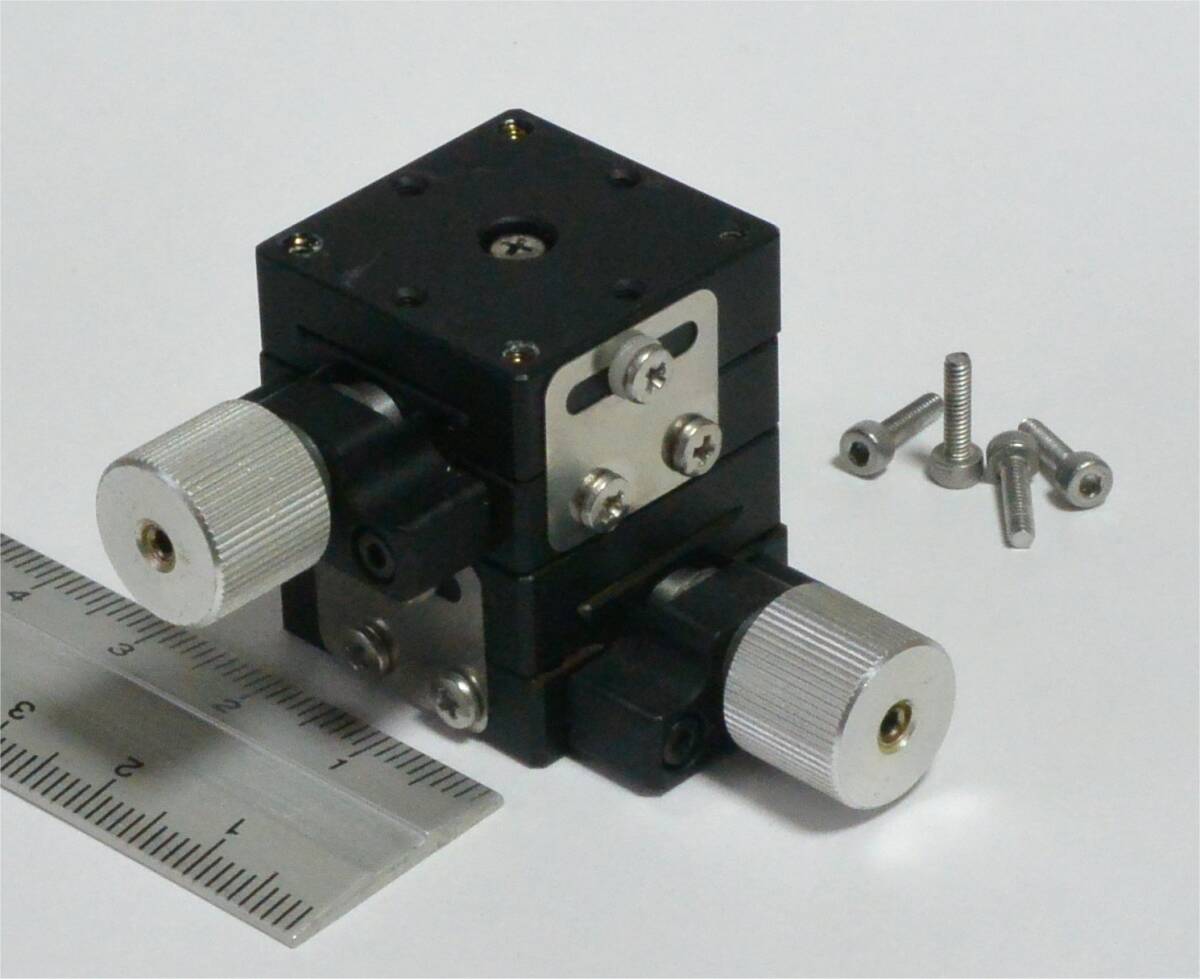 なお、このステージに合う、「□25mm ステージ用 45°傾斜スペーサ」、「□25mm ステージ用 L型ベースプレート」、「□25mm ステージ用 上面プレート」を、別に出品しています。