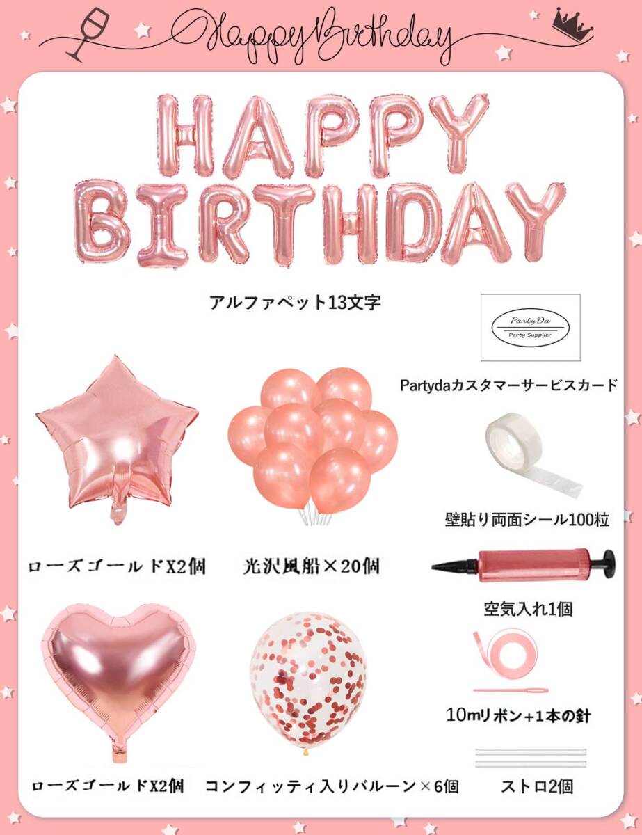誕生日 風船、Happy Birthday バルーン、誕生日 パーティー 飾り付け JPHB7X (A-ローズゴールドキット)