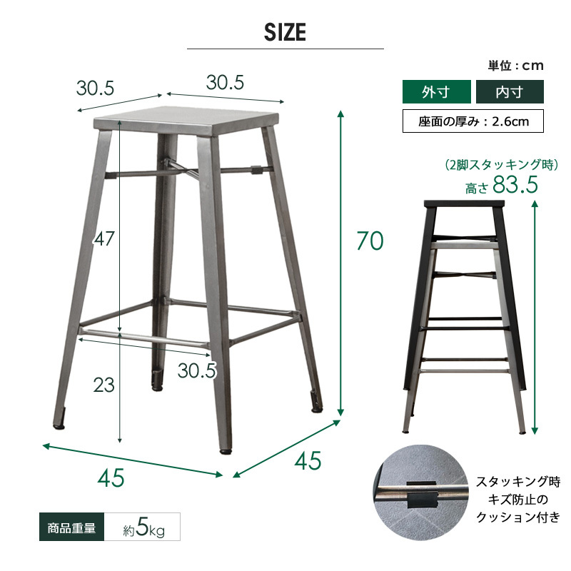 | 本体:幅45×奥行45×高さ70cm 座面:30.5×30.5cm |
